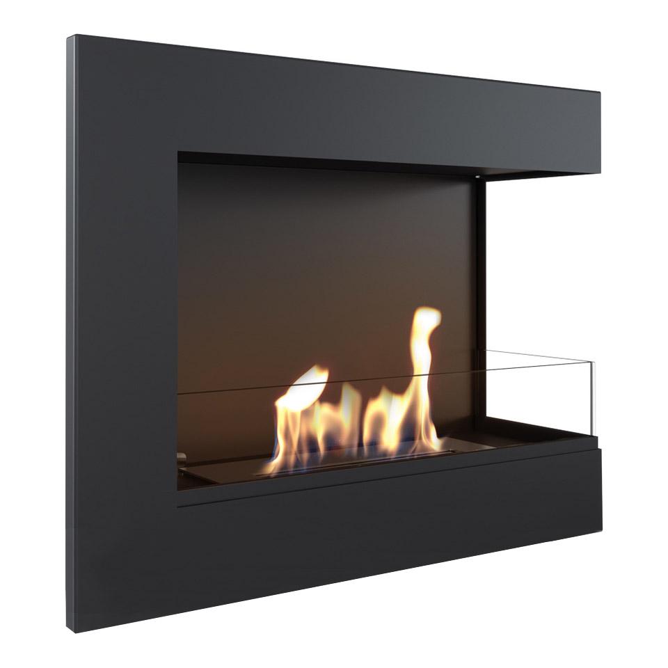 Bioethanol-Einbaukamin 60x48x28cm Flig Tampa Schwarz mit und ohne Glas Ecke rechts