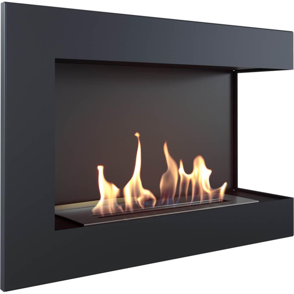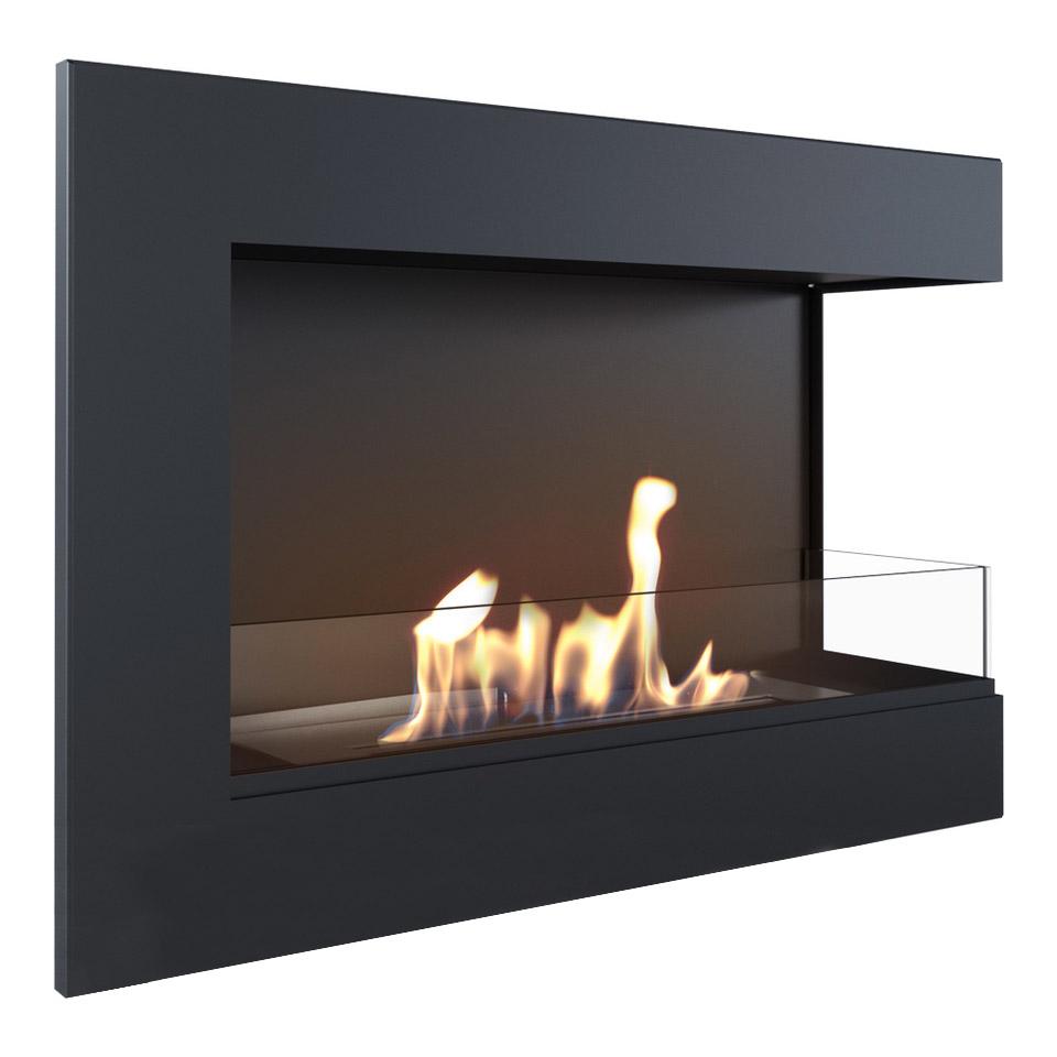 Bioethanol-Einbaukamin 70x48x28cm Flig Tampa Schwarz mit und ohne Glas Ecke rechts