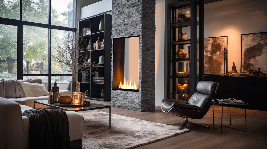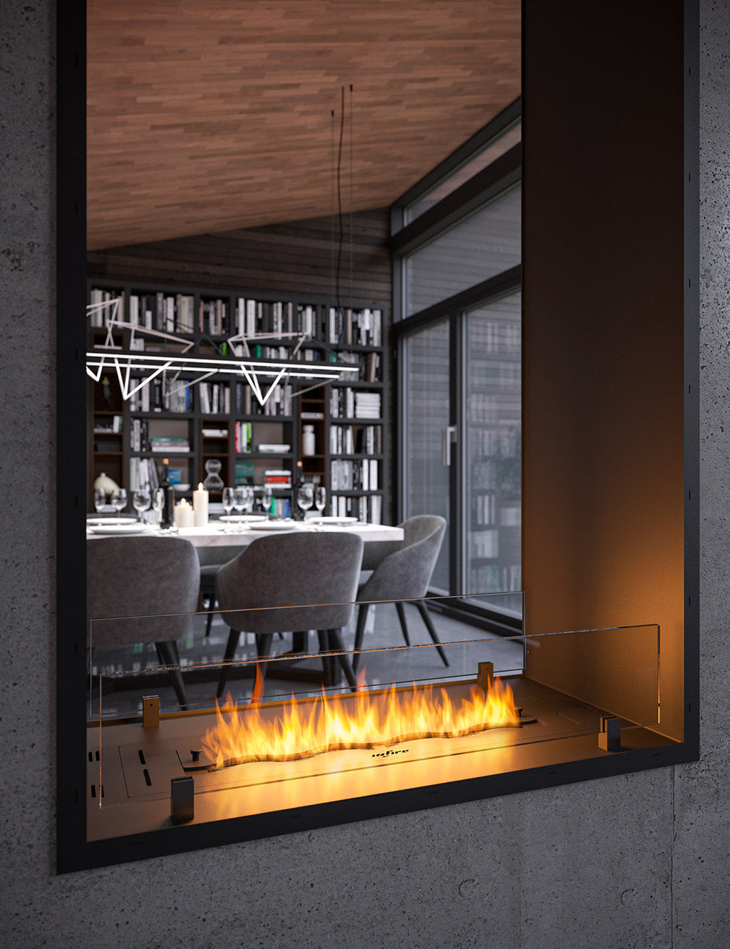 Il biocamino 2 SIDE nella versione SLIM è un elemento di interior design impressionante ed espressivo, e la loro forma verticale e le strette cornici nere conferiscono loro eleganza e un carattere moderno. La natura bifacciale consente un utilizzo funzionale in due stanze adiacenti, creando un'atmosfera accogliente e allo stesso tempo essendo una soluzione pratica per dividere lo spazio, creando un elemento decorativo di grande effetto che dona carattere all'intero interno.