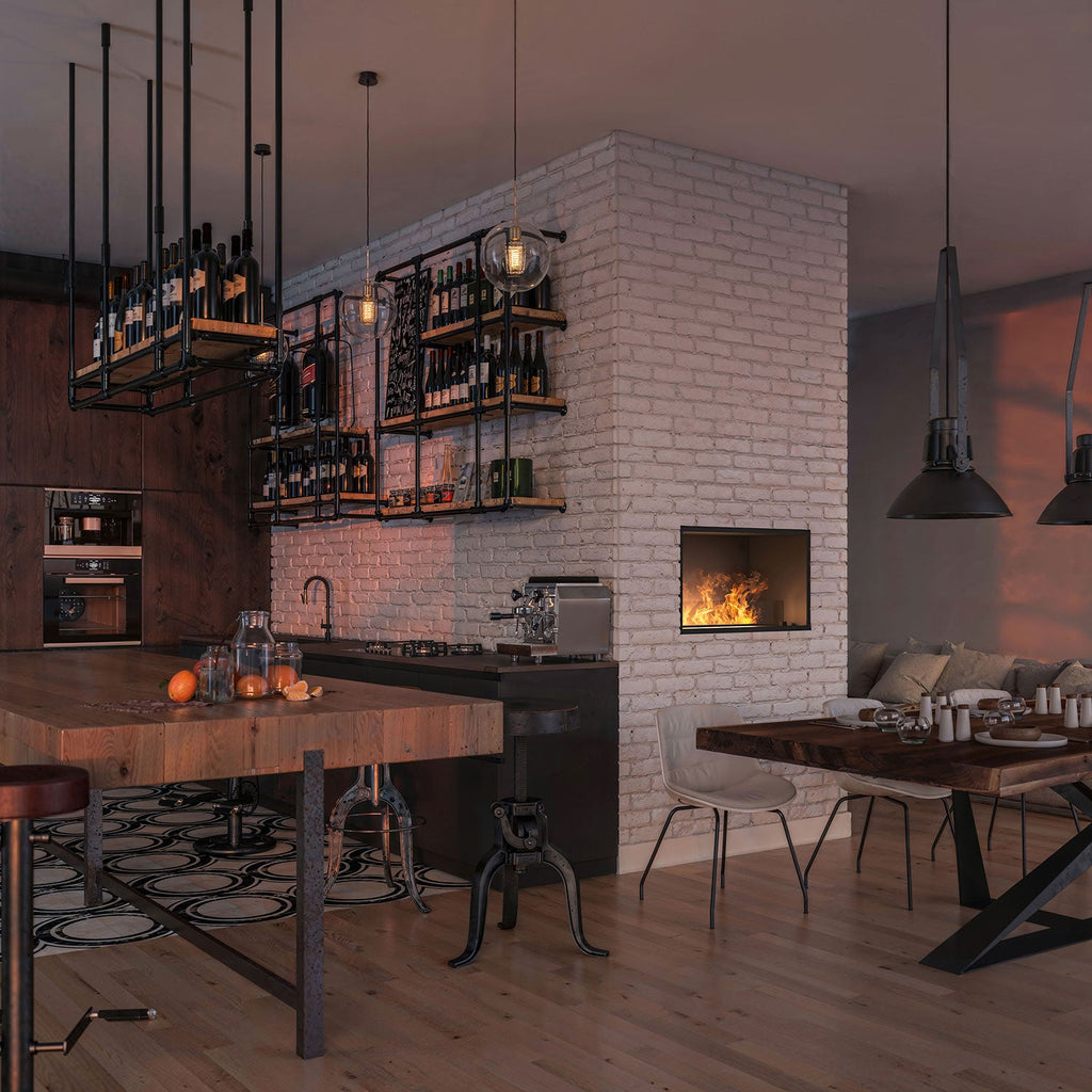 Il caminetto Invapo combina il vapore acqueo con la moderna illuminazione a LED, creando effetti di fiamma realistici senza i rischi associati al fuoco reale. Le fiamme sono generate da acqua nebulizzata, illuminate da luci a LED in qualsiasi tonalità di colore scelta.