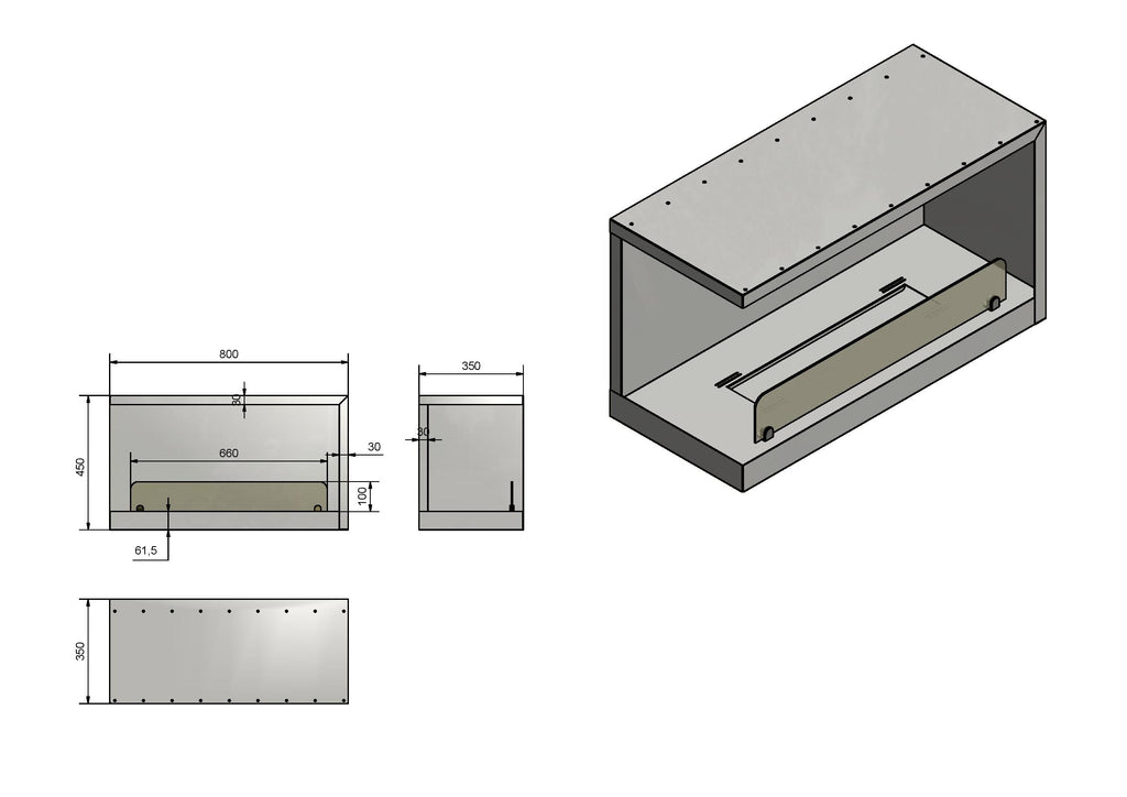 Technische Merkmale Bioethanol-Einbaukamin 80 x 45 x 35 cm Inside L800 V2 linke Ecke schwarz mit Glas
