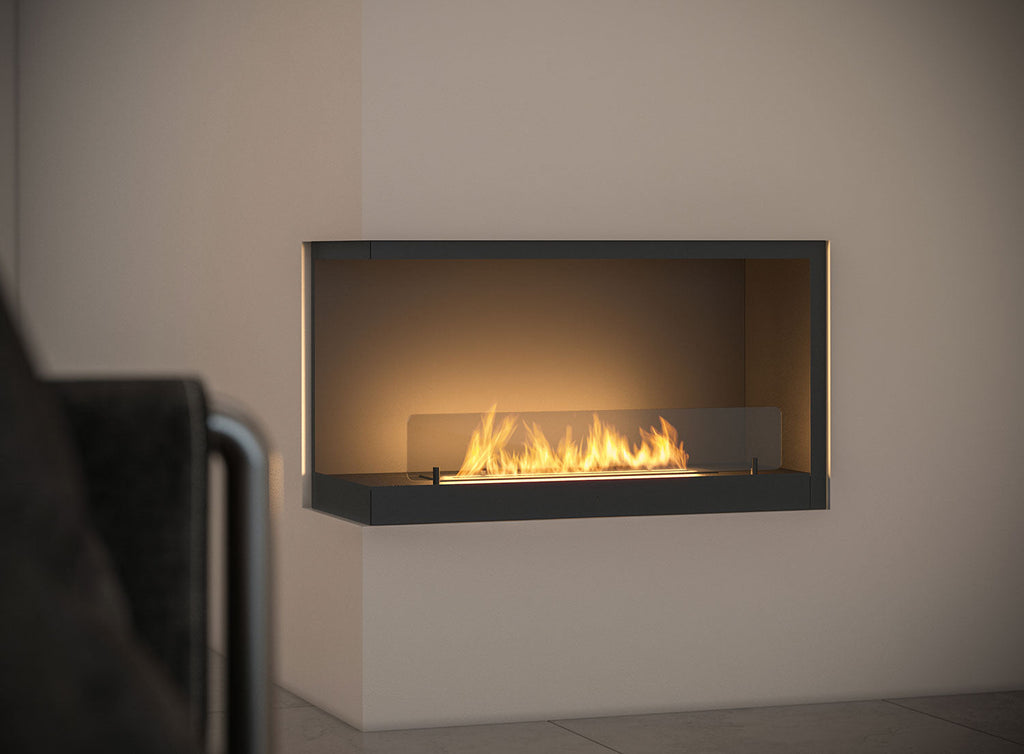 Bioethanol-Einbaukamin 80 x 45 cm mit Glas innen L800 V2 linke Ecke schwarz