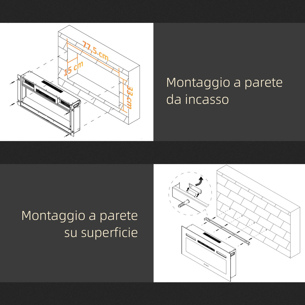 - Dimensioni apertura muro: 77.5L x 15P x 33A cm (richiesta per l'inserimento)
