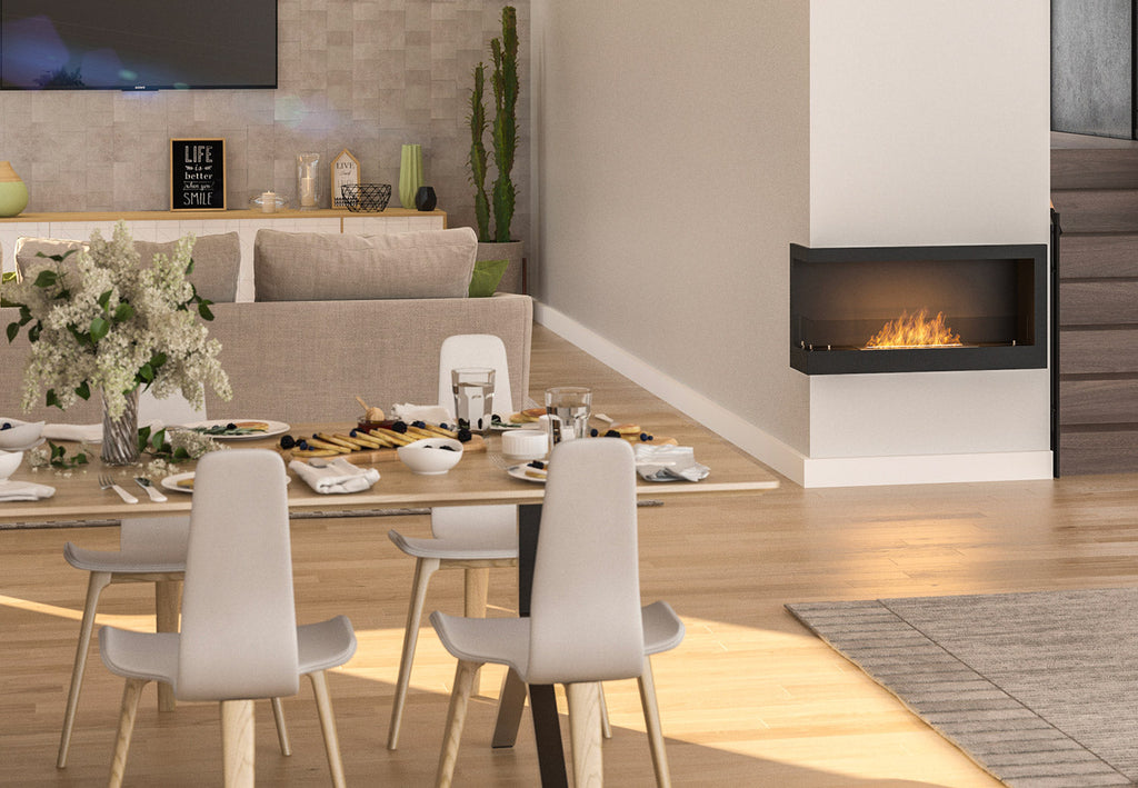 Corner 900 Left Black Bioethanol-Einbaukamin