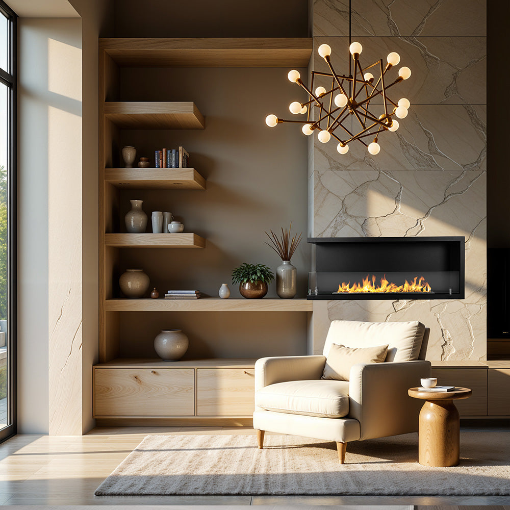 Camino a Bioetanolo da Incasso ad angolo 120x22,4x45 cm Sutri 120 SX Nero