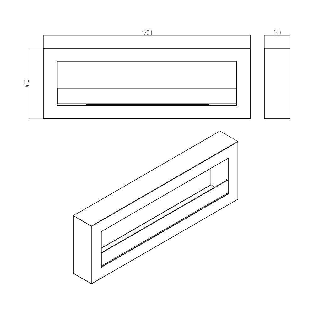 Camino a Bioetanolo da Parete 120x15x41 cm Siena 120 Nero