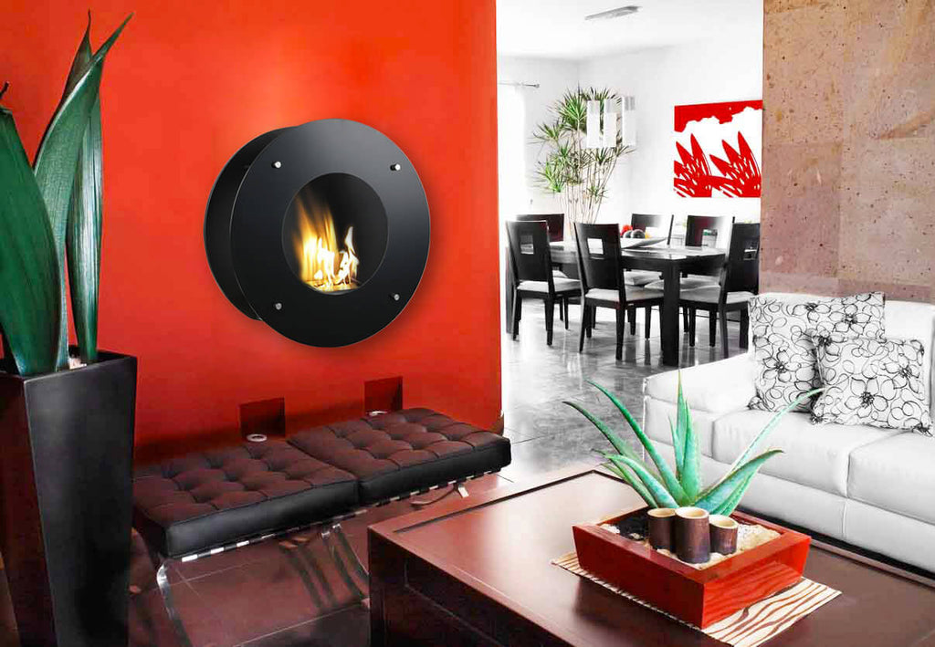 Bioethanol-Wandkamin mit Glasrahmen Ø60x20,4cm Vannini Calatrava Black
