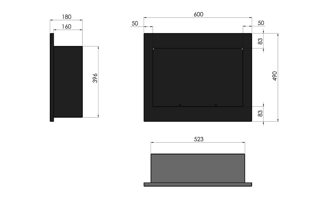 Technische Merkmale Bioethanol-Wandkamin Rahmen 600 Schwarz mit Glas