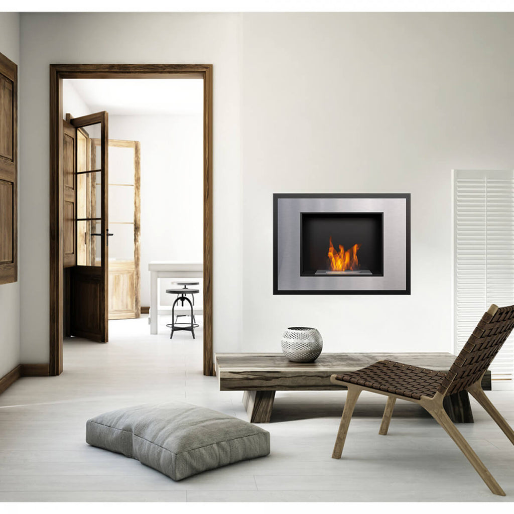 Wand- oder Einbau-Bioethanol-Kamin. Es ist einfach zu installieren und kann auf zwei Arten montiert werden: in einer speziellen Nische in die Wand eingelassen oder mit den entsprechenden Dübeln wie ein Bild aufgehängt. Sein Design macht es für jede Umgebung geeignet. Durch Zugabe einiger Tropfen parfümierter Essenz zum Bioethanol kann der Biokamin auch als Aromadiffusor verwendet werden.