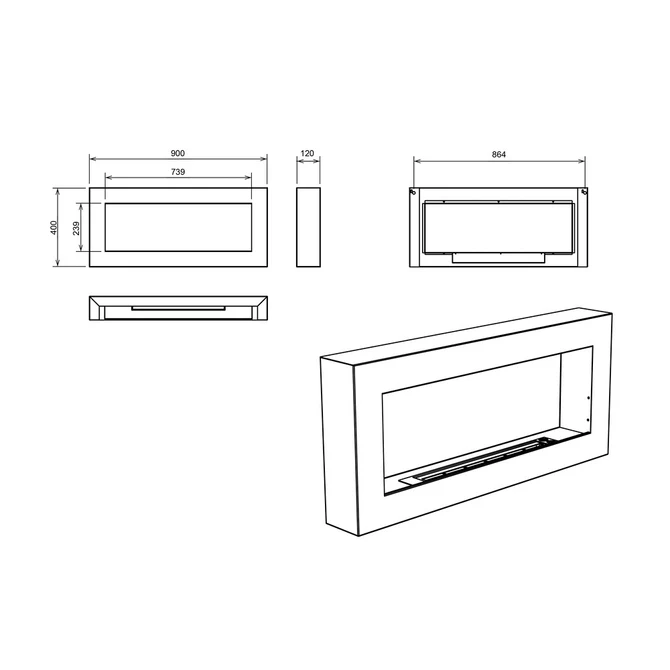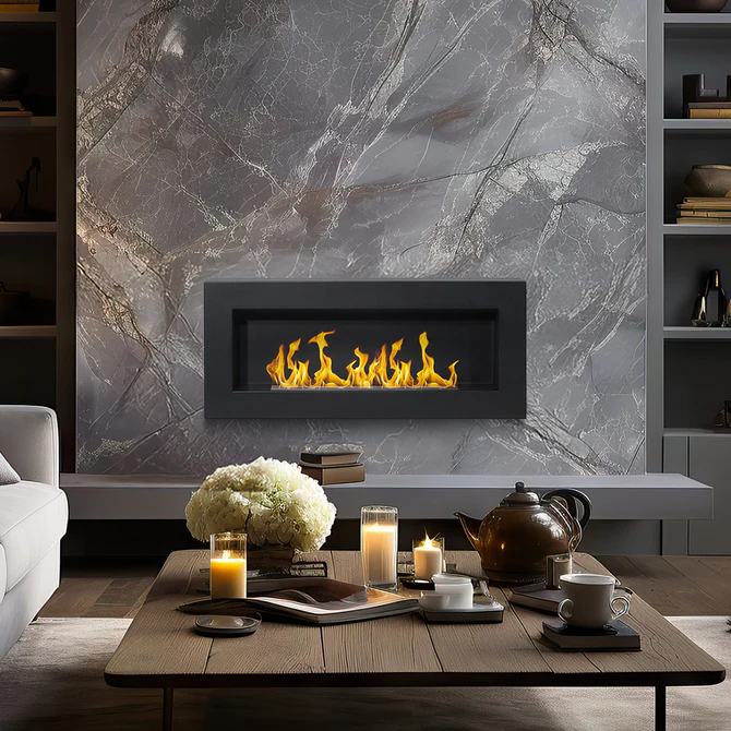 Bioethanol Wandkamin 90x12x40 cm in schwarzem Edelstahl