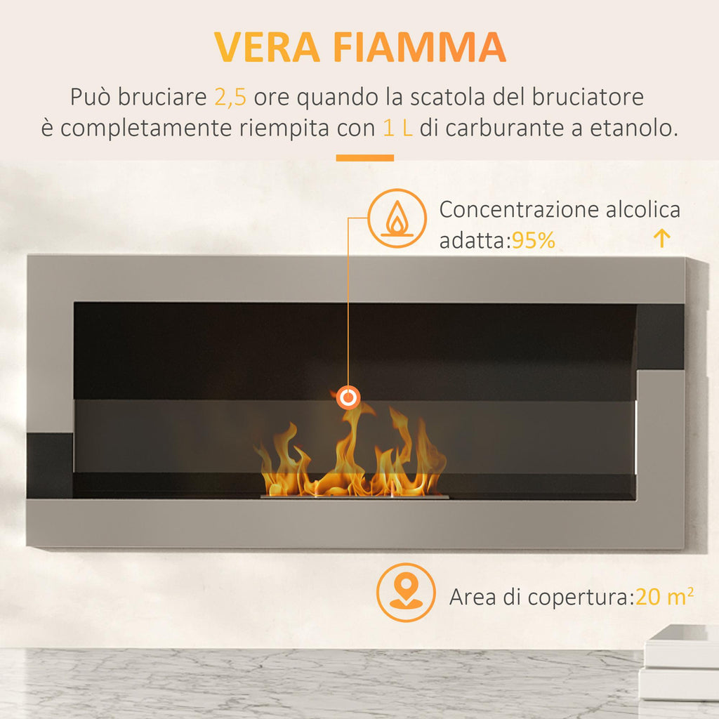 Bioethanol Wandkamin 90x16x40 cm in Silber Edelstahl