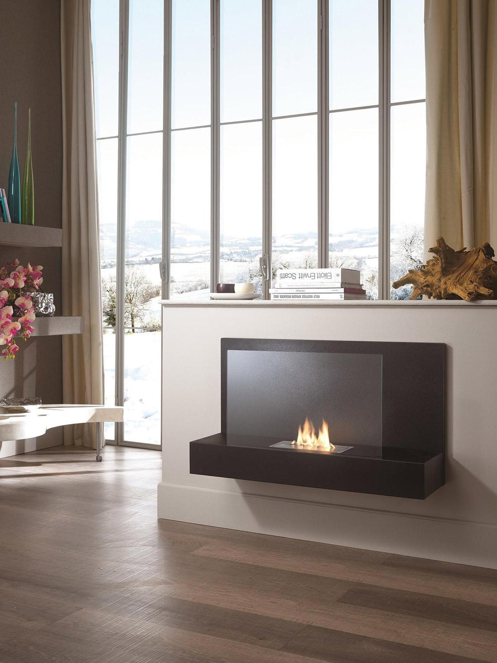 Bioethanol Wandkamin 90x26x50 cm Schwarz