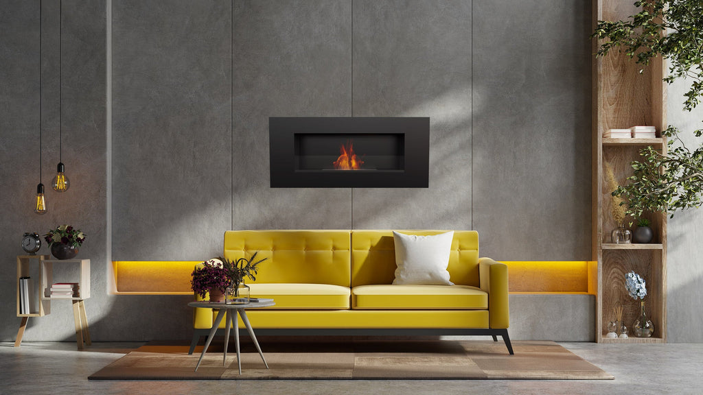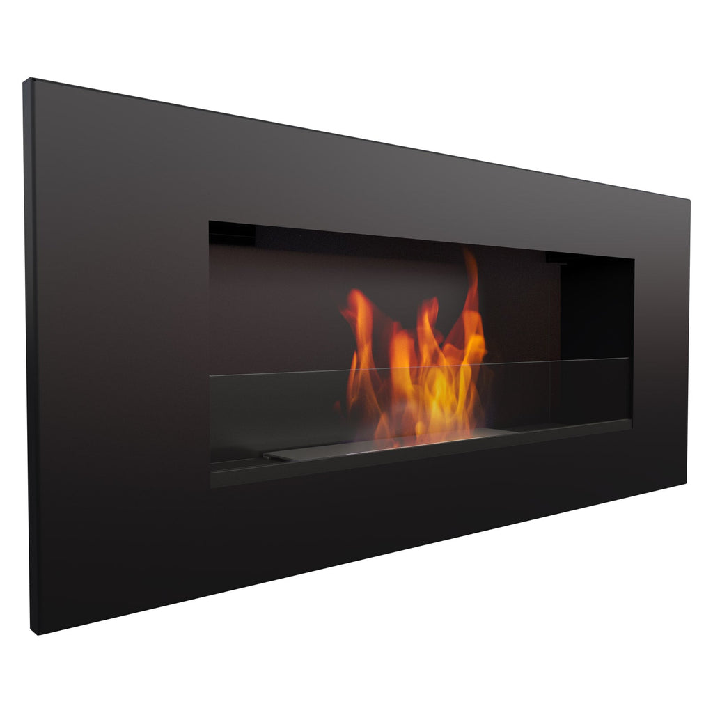 Bioethanol Wandkamin 90x40 cm mit Glas oder ohne Glasscheibe Huston 2 Schwarz