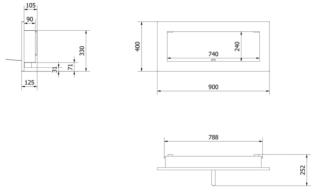 - Abmessungen (BxHxT): 90x40x10,3cm