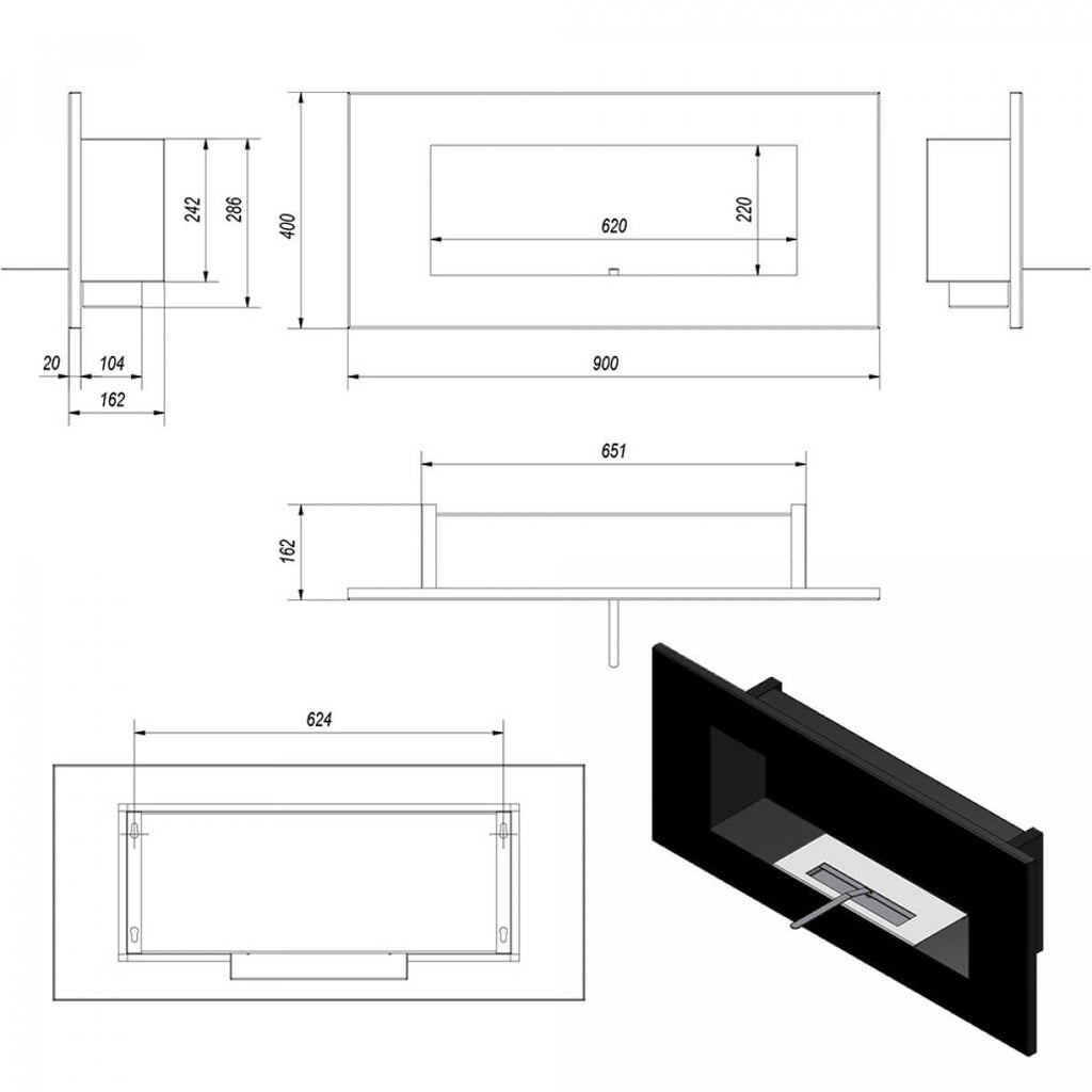 Wand- oder Einbau-Bioethanol-Kamin. Es ist einfach zu installieren und kann auf zwei Arten montiert werden: in einer speziellen Nische in die Wand eingelassen oder mit den entsprechenden Dübeln wie ein Bild aufgehängt. Sein Design macht es für jede Umgebung geeignet. Durch Zugabe einiger Tropfen parfümierter Essenz zum Bioethanol kann der Biokamin auch als Aromadiffusor verwendet werden.