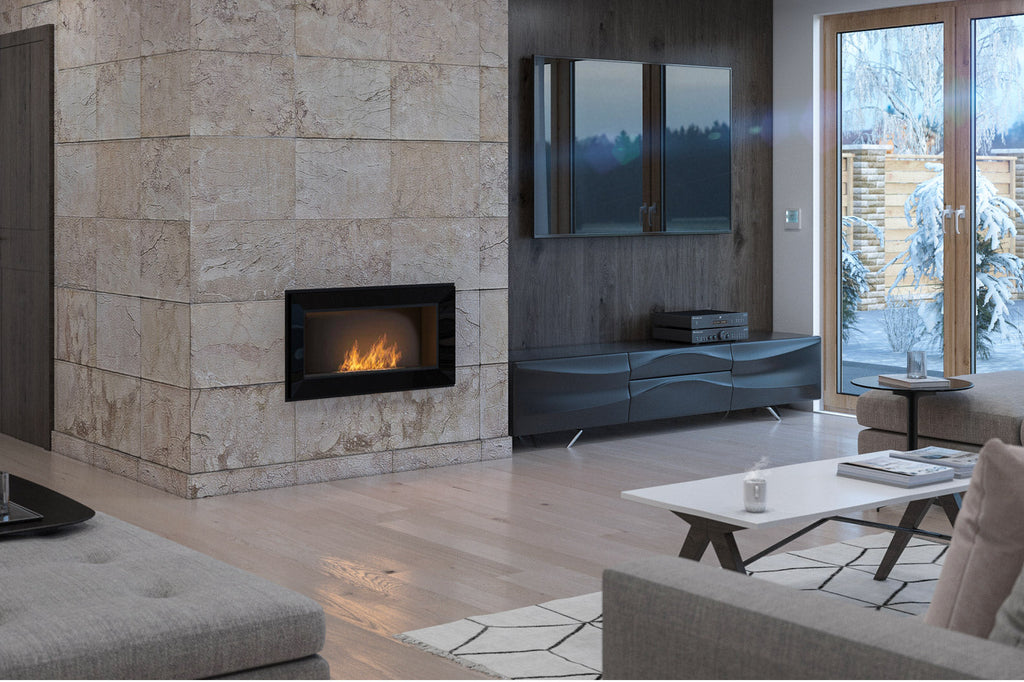 Bioethanol Wandkamin 90x49 cm Rahmen 900 Schwarz