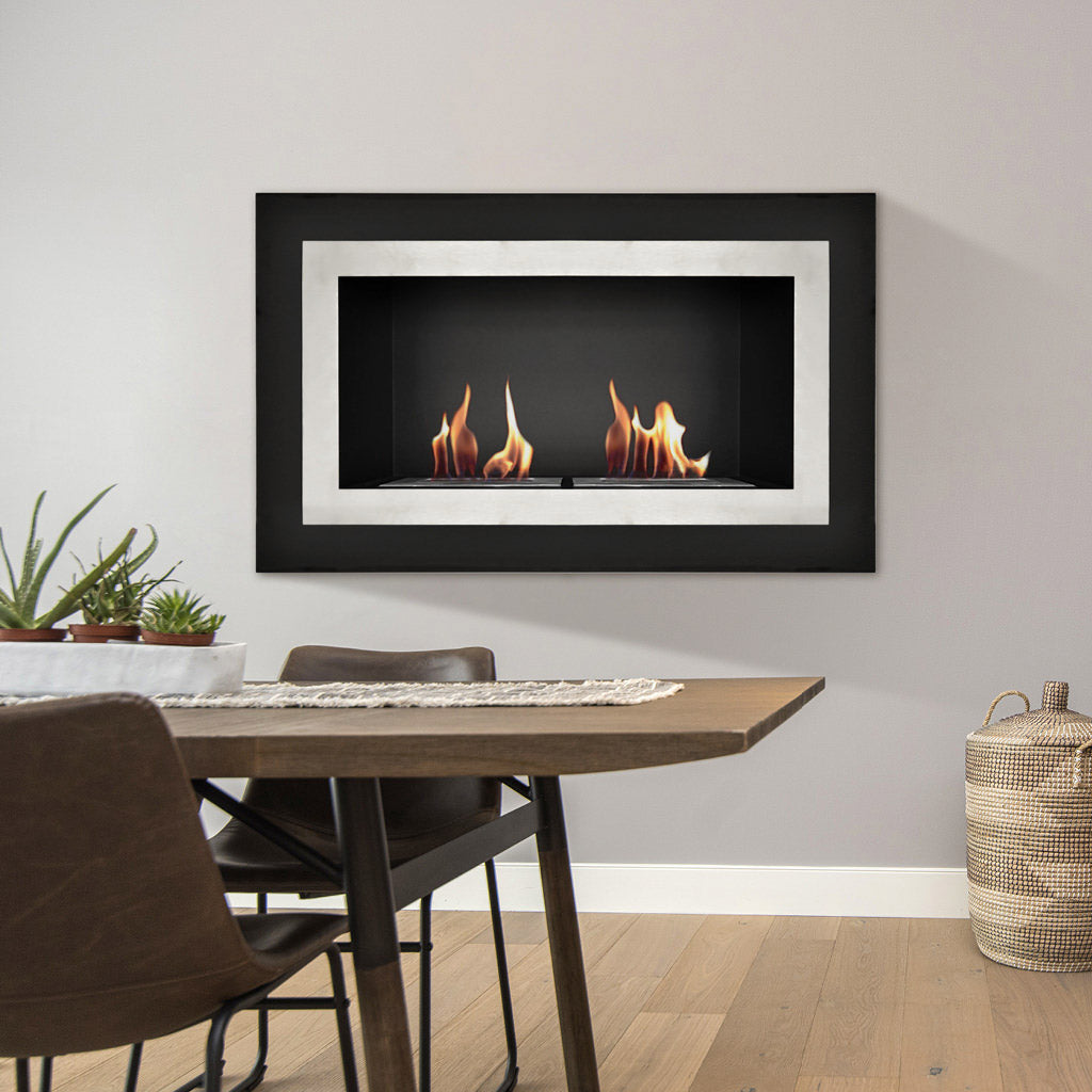 Taylor Black and Steel Wall Bioethanol Kamin 90x55x17 cm