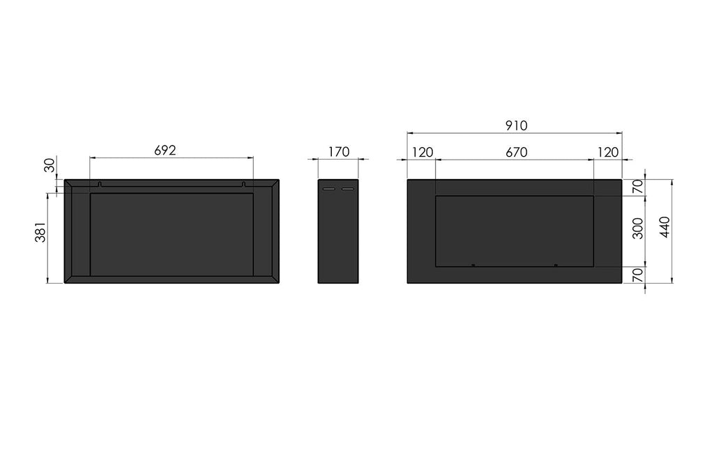 Technische Merkmale Bioethanol Wandkamin 91x44x17 cm Blackbox 910 Schwarz