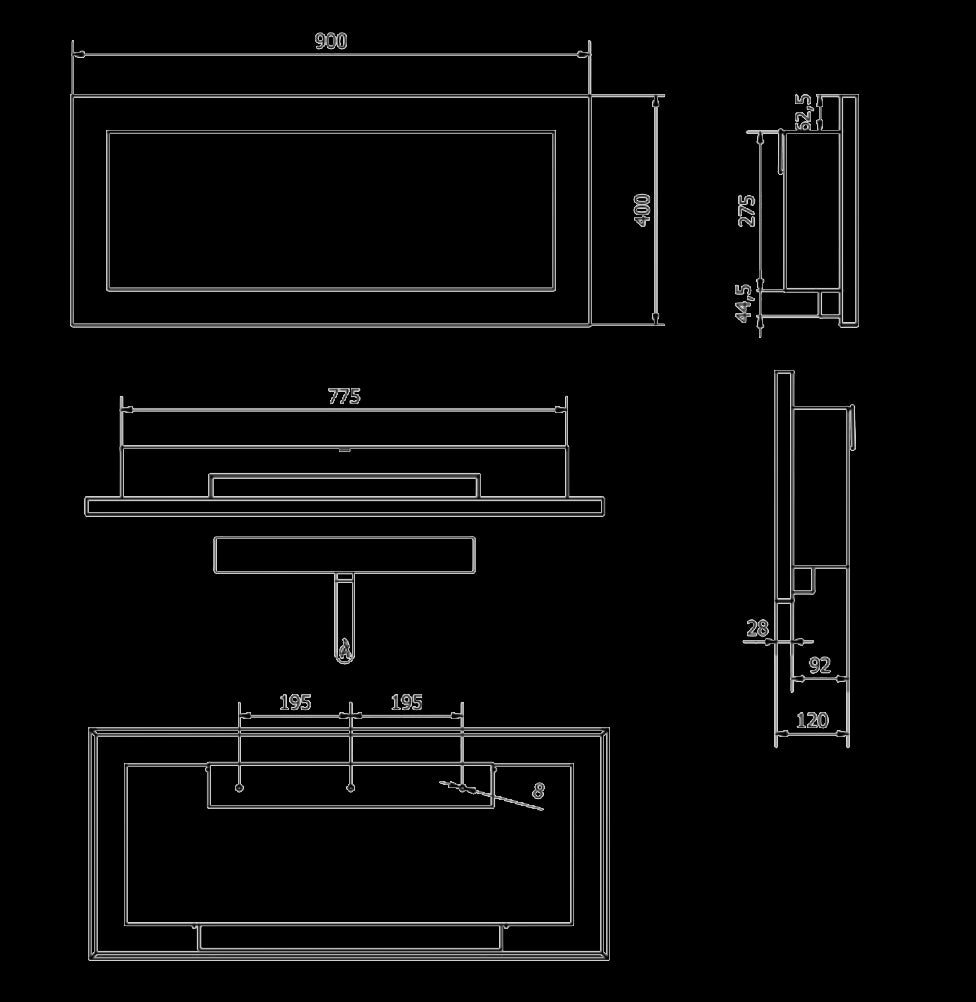 Camino a Bioetanolo da Parete o Incasso 90x12x40 cm Lucca Bianco