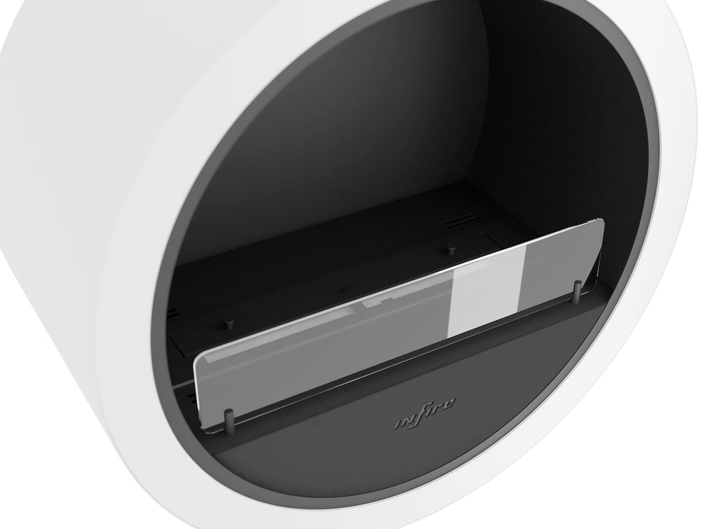 Bioethanol-Wandkamin Ø70 cm Rundwand Weiß mit Glas
