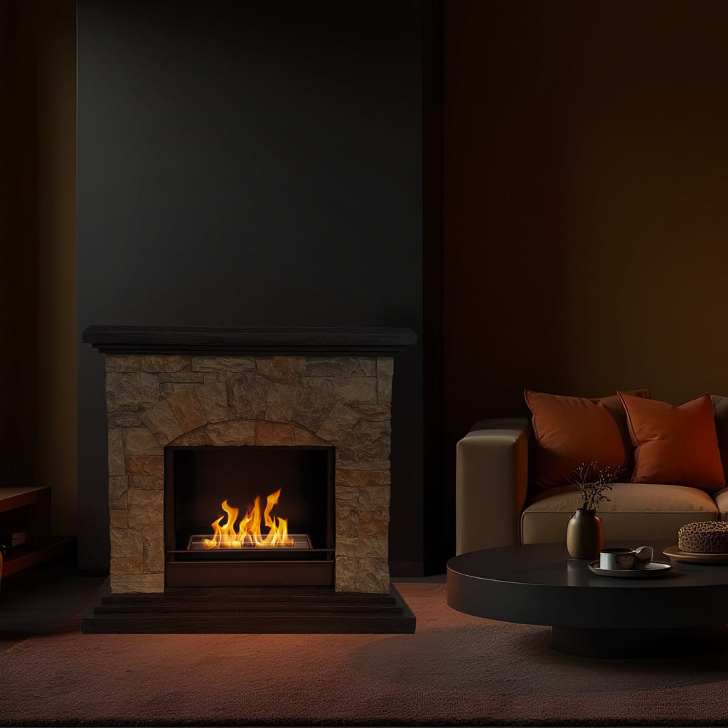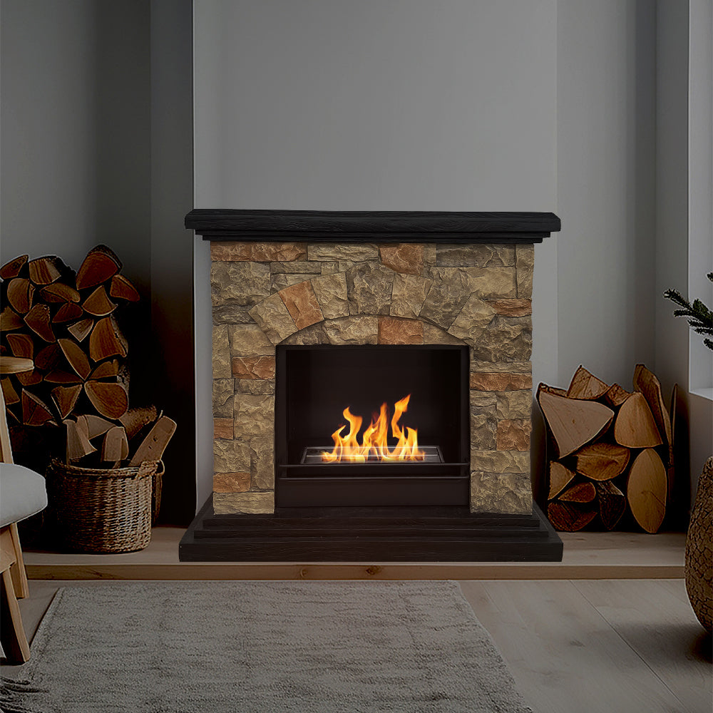 Camino a Bioetanolo da Pavimento 105x38x100 cm Belluno Effetto Finta Pietra