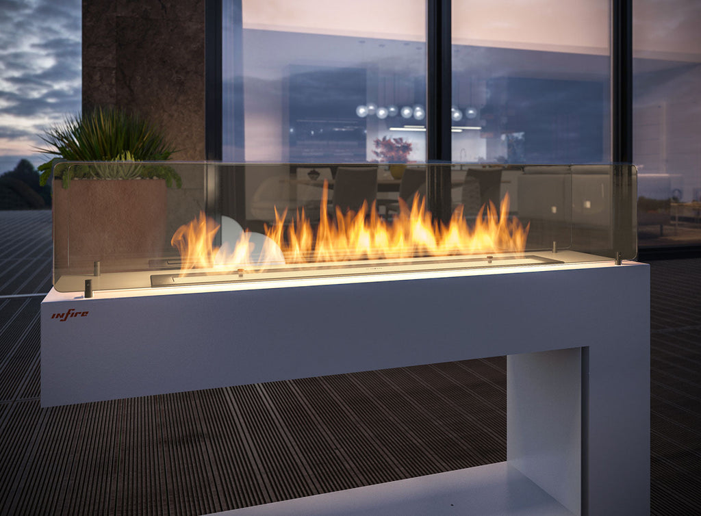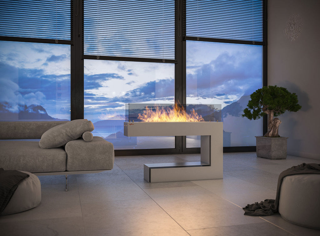Diese Art von Biokamin wird oft bei geräumigen Räumen gewählt, in denen mehrere Räume miteinander verbunden sind, z. B. ein Wohnzimmer mit einem Esszimmer. Seine Montage erfordert keine komplizierte Installation oder den Anschluss an den Schornstein. Es ist einfach zu installieren und intuitiv zu bedienen.