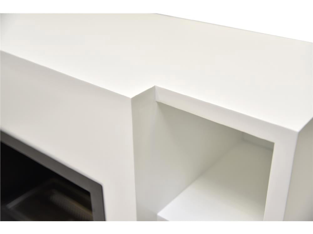 Trudi besteht aus mattweißem MDF und Metall. Mit 3,5 Liter Bioethanol, der maximalen Kapazität seines Brenners, bleibt er bei geöffnetem Tank 4 bis 6 Stunden lang eingeschaltet, wobei eine gute Wärmemenge in einem Raum von etwa 40 m2 freigesetzt wird.