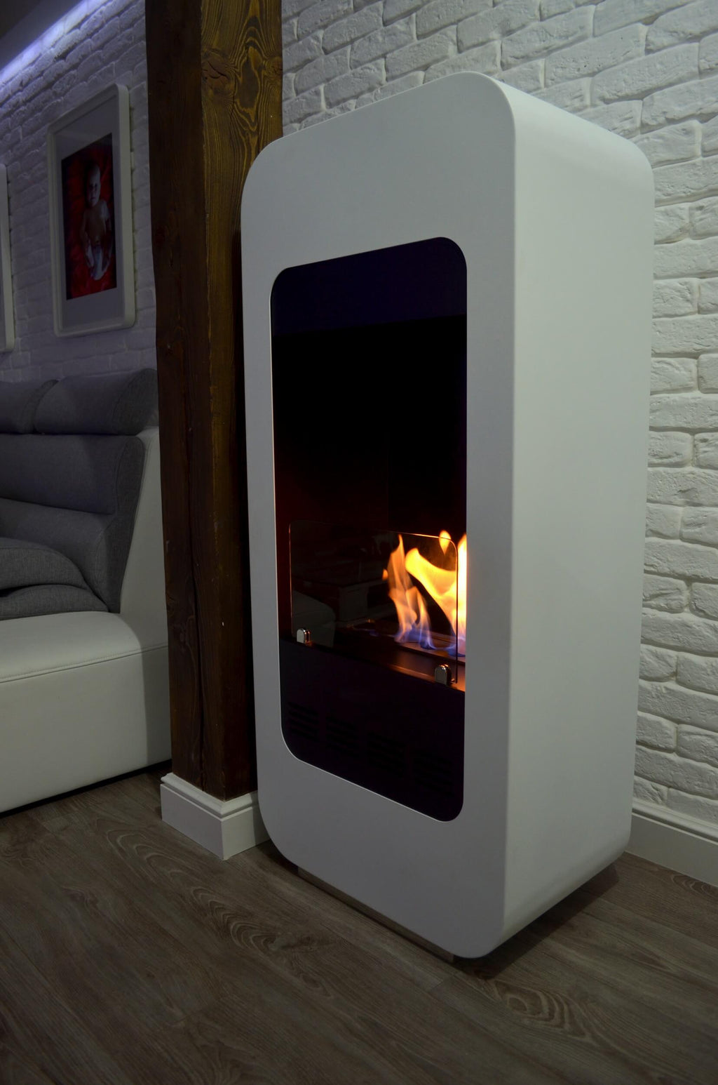 Diese Art von Biokamin wird oft bei geräumigen Räumen gewählt, in denen mehrere Räume miteinander verbunden sind, z. B. ein Wohnzimmer mit einem Esszimmer. Seine Montage erfordert keine komplizierte Installation oder den Anschluss an den Schornstein. Es ist einfach zu installieren und intuitiv zu bedienen.