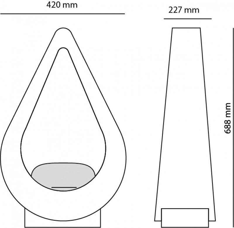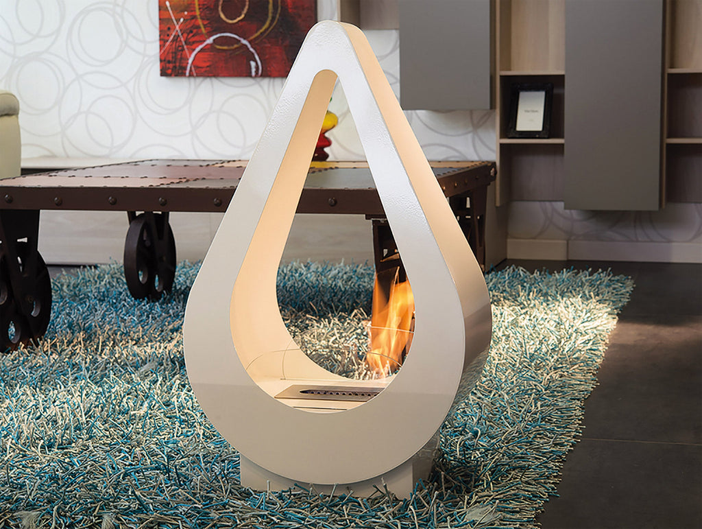 Boden-Biokamin mit besonderer Tropfenform.