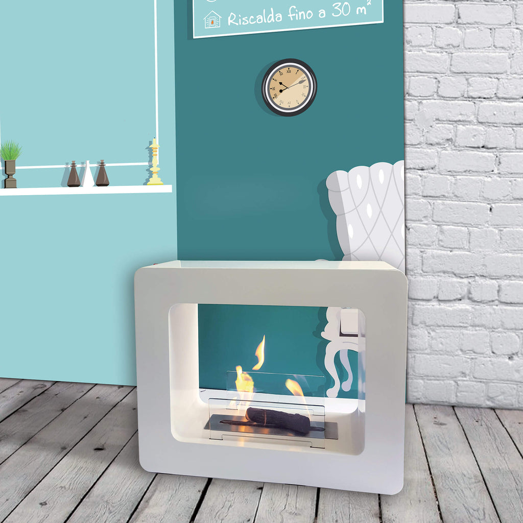 Bioethanol-Kamin mit Schutzglas auf beiden Seiten des Brenners. Es verfügt über eine 30 cm lange Flamme, besonders choreographisch und heiß. Sehr schön kombinierbar mit Accessoires, wie dem neuen Dekoholz im modernen Stil, von Hand bemalt. Es kann in Wohnungen oder öffentlichen Räumen verwendet werden, um die Temperatur um einige Grad zu erhöhen, aber auch um die Atmosphäre zu genießen, die nur die lebendige Flamme des Feuers geben kann.