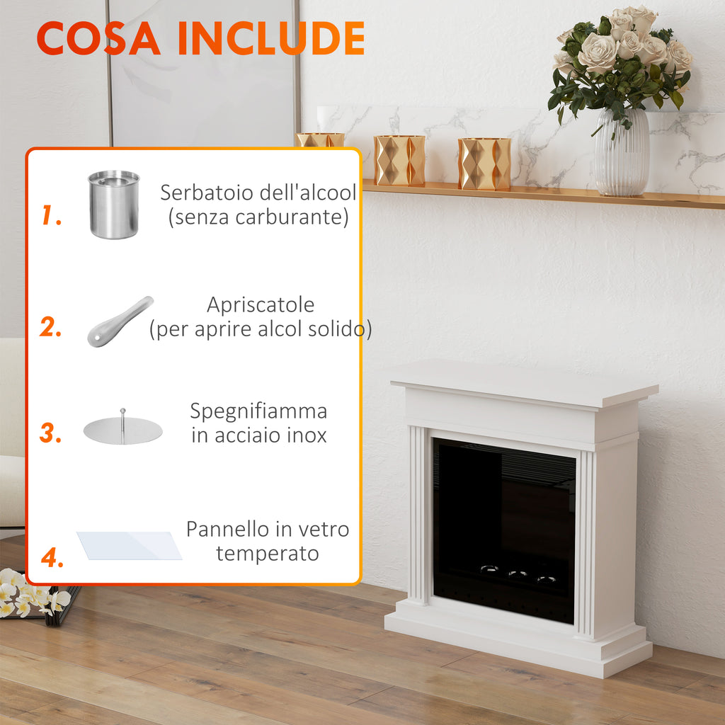 Camino a Bioetanolo da Pavimento 76x28x76 cm Bruciatore 0,4L Bianco