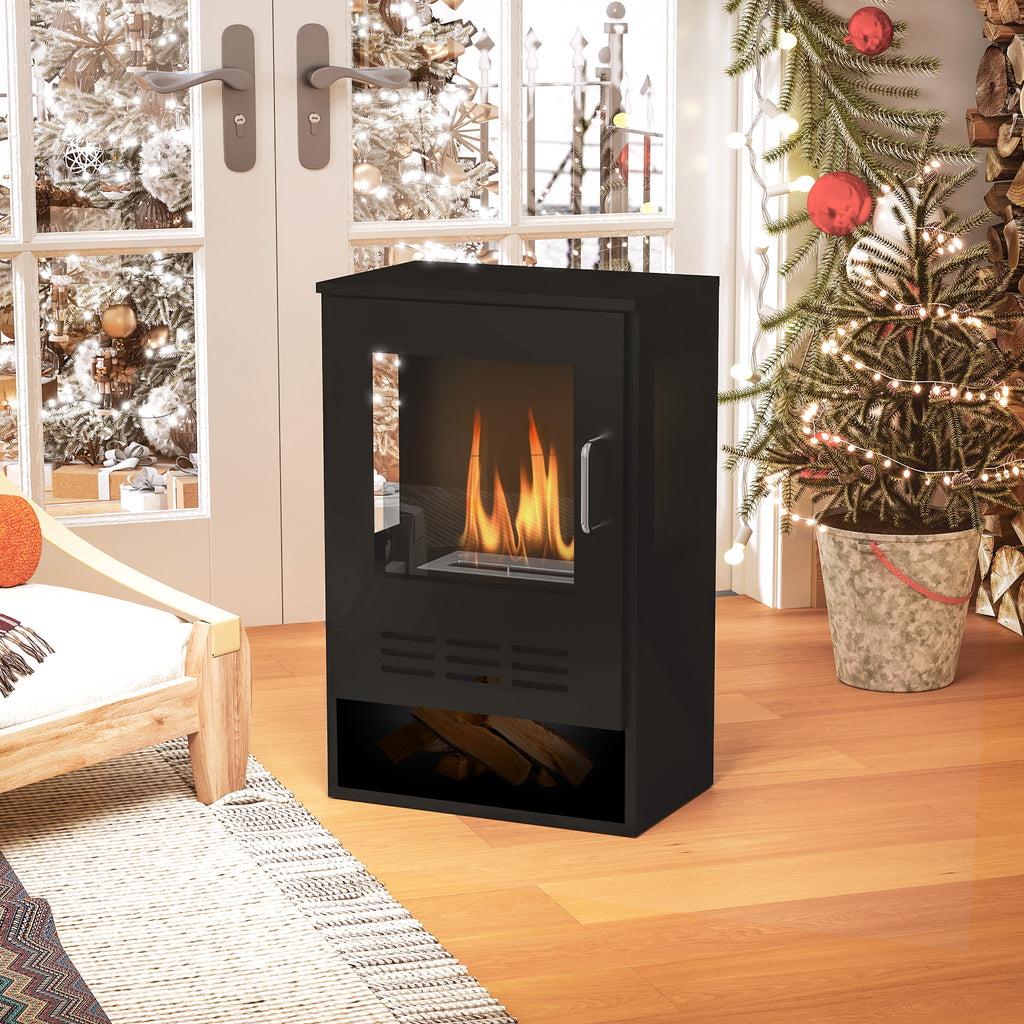 Camino a Bioetanolo da Pavimento Autoportante con Bruciatore da 0,9L 44x28x68 cm Nero