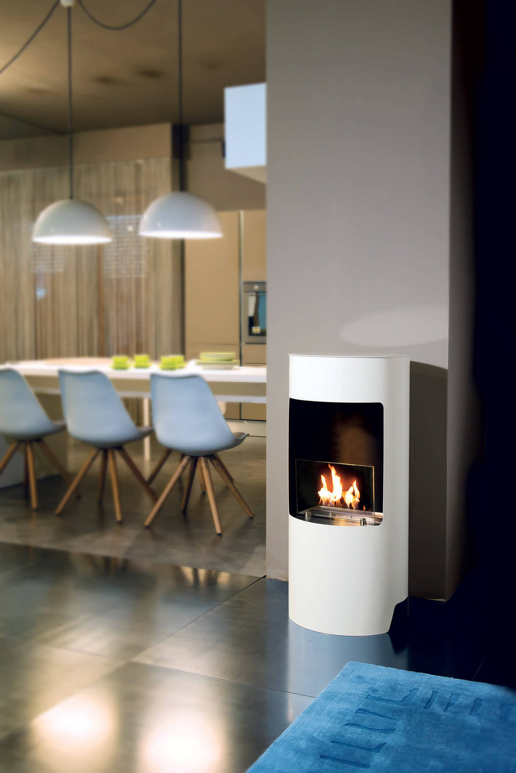 Bioethanol-Bodenkamin Ø45x95 cm Karlsen Cortina Weiß