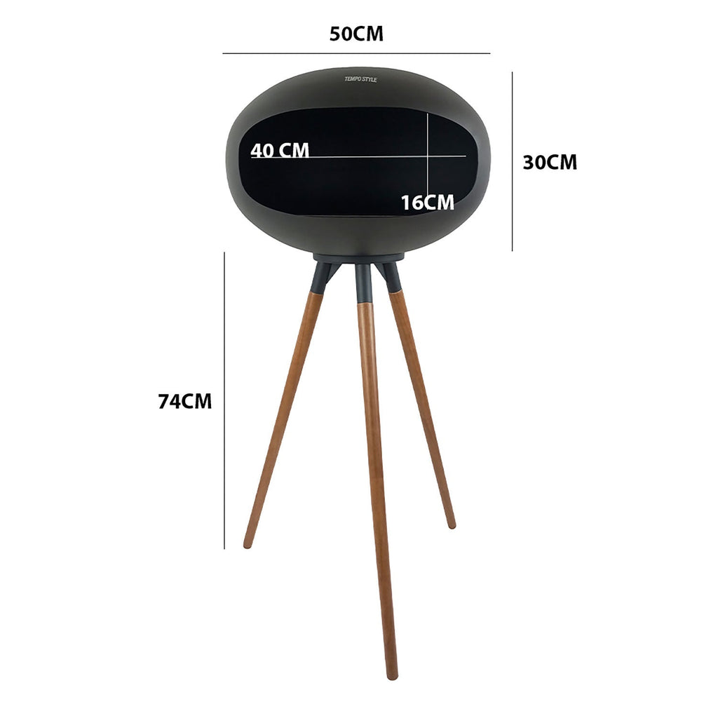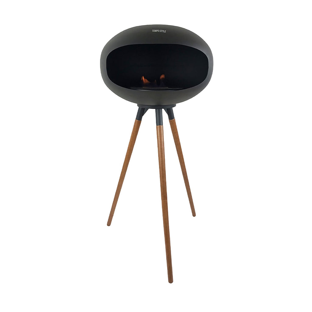 Camino a Bioetanolo da Pavimento Ø50x74 cm SICILY in Stile Nordico in Metallo Nero e Gambe in Legno Rovere