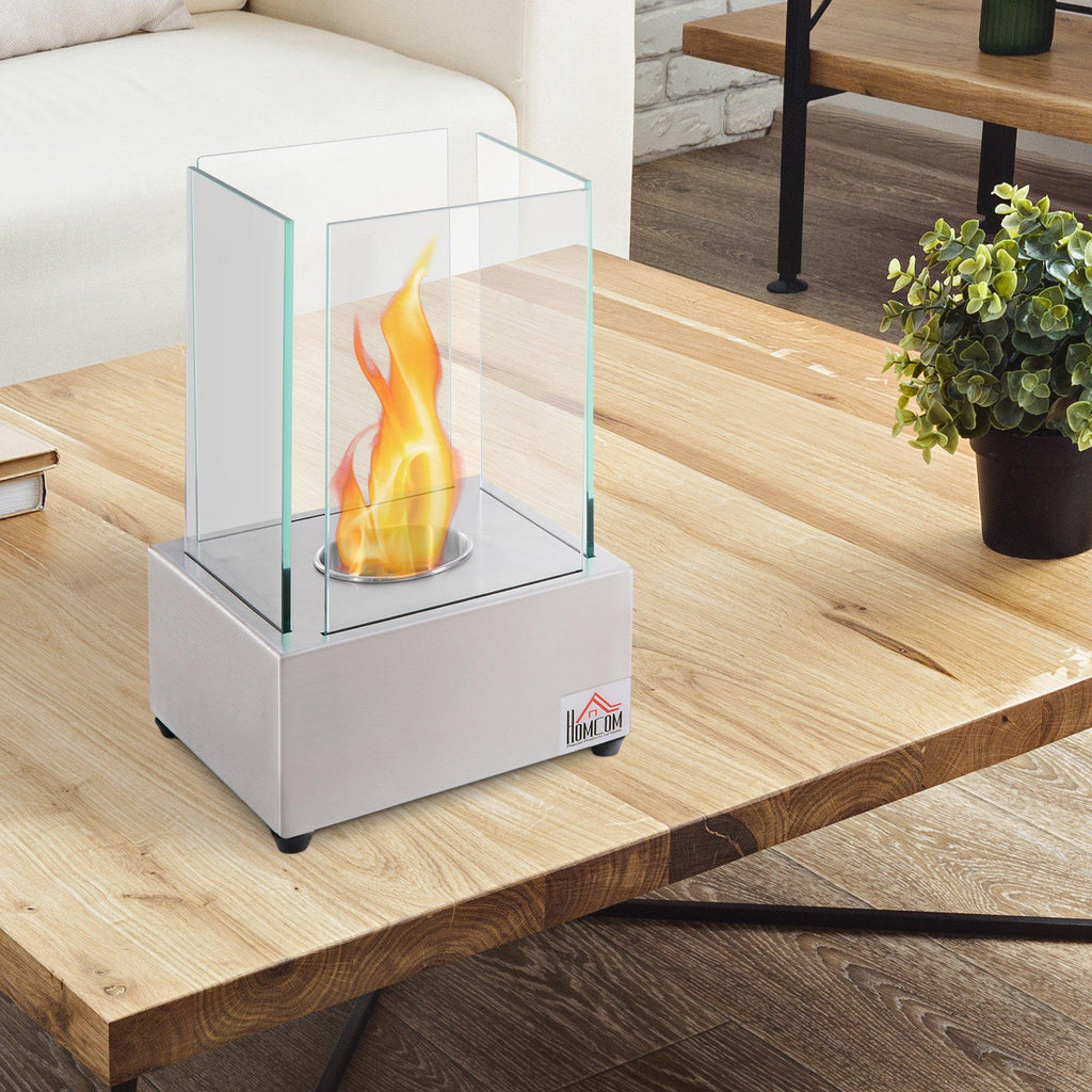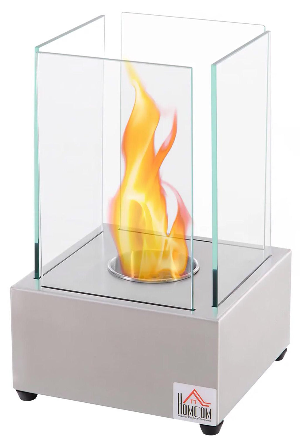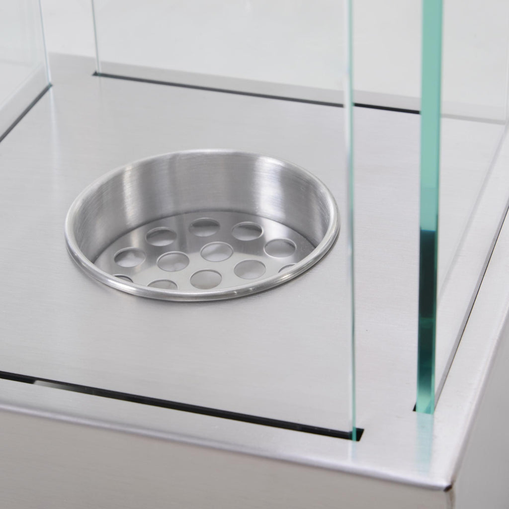 Bioethanol Tischkamin 20x20x33 cm in Stahl und grauem Glas