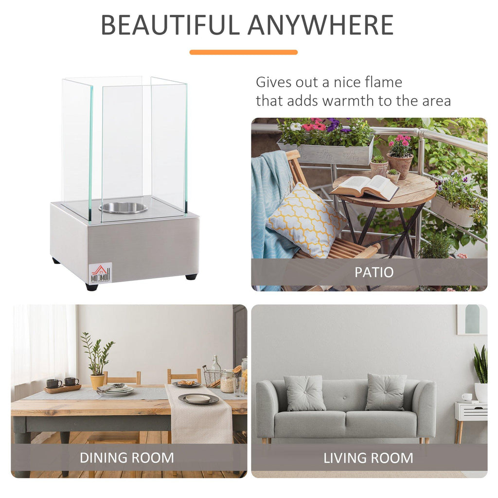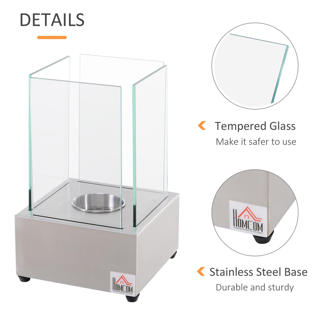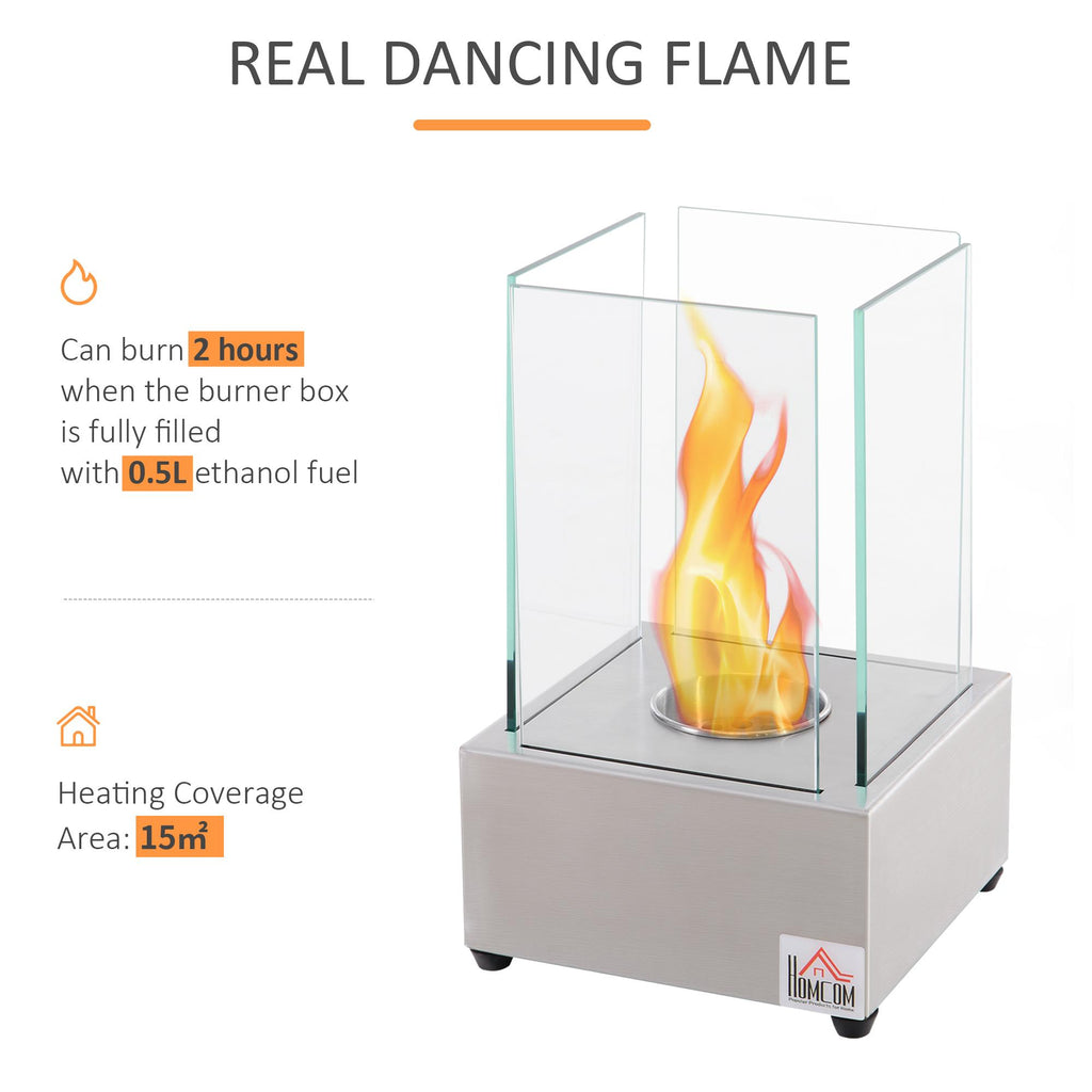 Bioethanol Tischkamin 20x20x33 cm in Stahl und grauem Glas