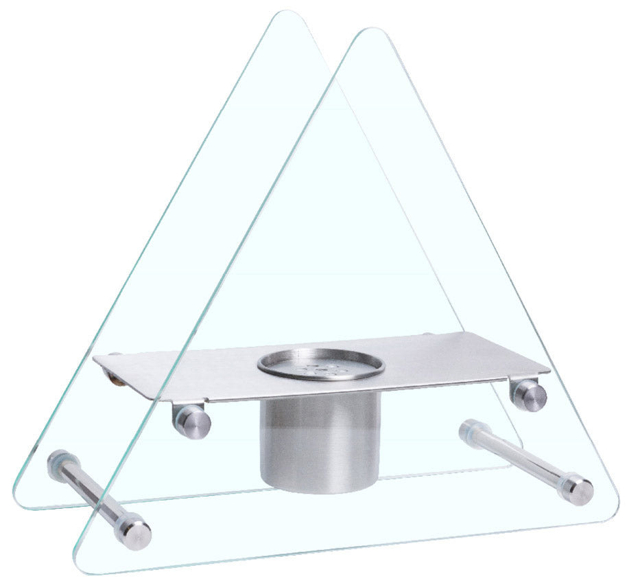 Triade ist ein szenografischer und innovativer Bio-Tischkamin mit dreieckigen gehärteten Kristallen, die sein wichtigstes Stilmerkmal darstellen. Durch die Transparenz des Glases wird es möglich sein, den Tanz der Flamme zu schätzen.