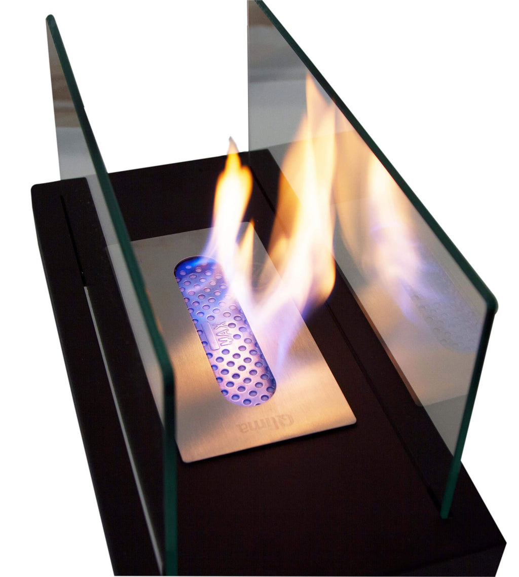 Besonderes Augenmerk wird auch auf die Benutzerfreundlichkeit gelegt. Die beiden Seiten bestehen nämlich aus gehärtetem Glas, was auch im Falle eines Bruchs mehr Sicherheit garantiert. Und die spezielle Form des Brenners hält das Bioethanol zurück und verhindert, dass es ausläuft, wenn der Kamin auf den Kopf gestellt wird.