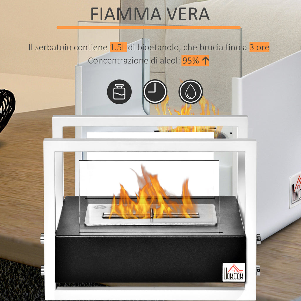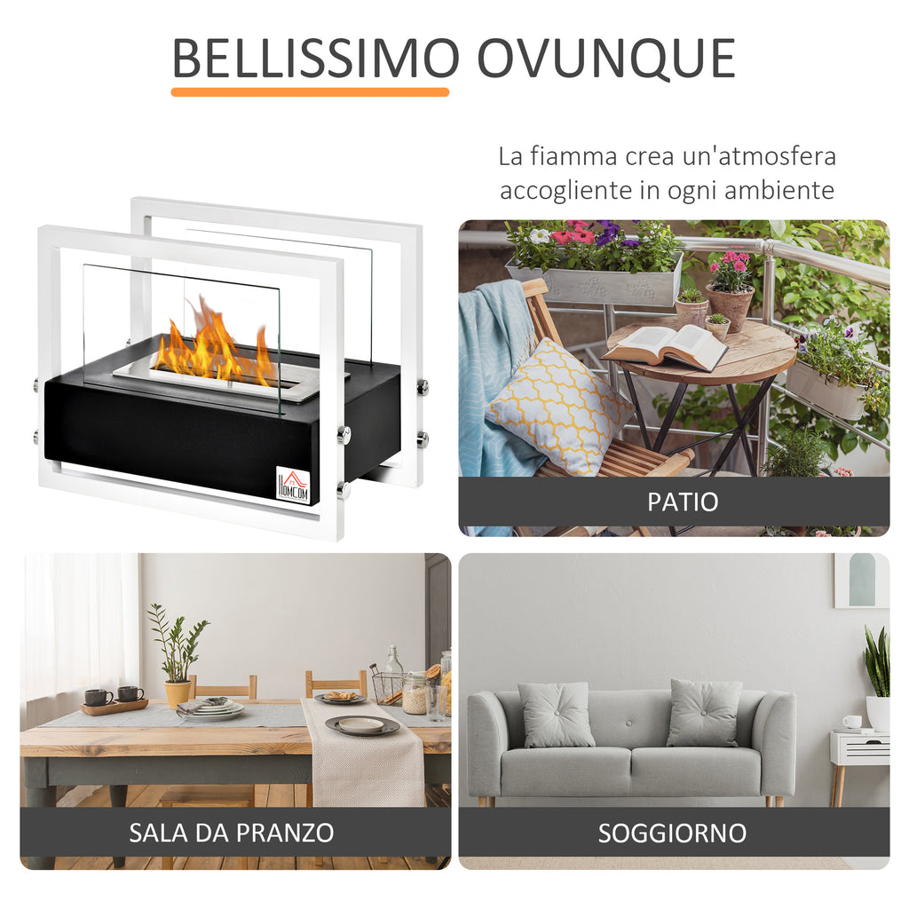 Tisch Bioethanol Kamin 39,5x25x30 cm Schwarz und Weiß