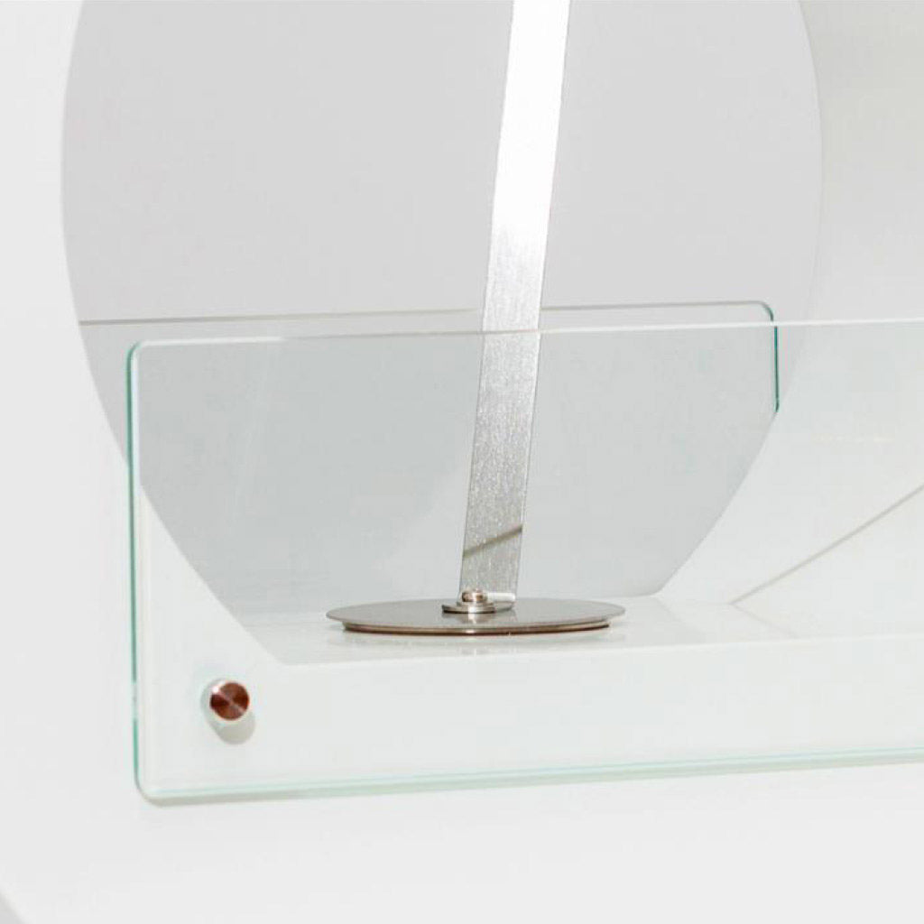 Der Bio-Kamin Joy ist ideal für Innen- und Außenbereiche und seine runde, exklusive und fesselnde Form macht ihn zu einem Objekt der modernen Kunst. Zwei rechteckige und parallel angeordnete Gläser schützen den Brenner vor möglicher Zugluft und geben stets einen Blick auf die Lebendigkeit der Flamme frei.