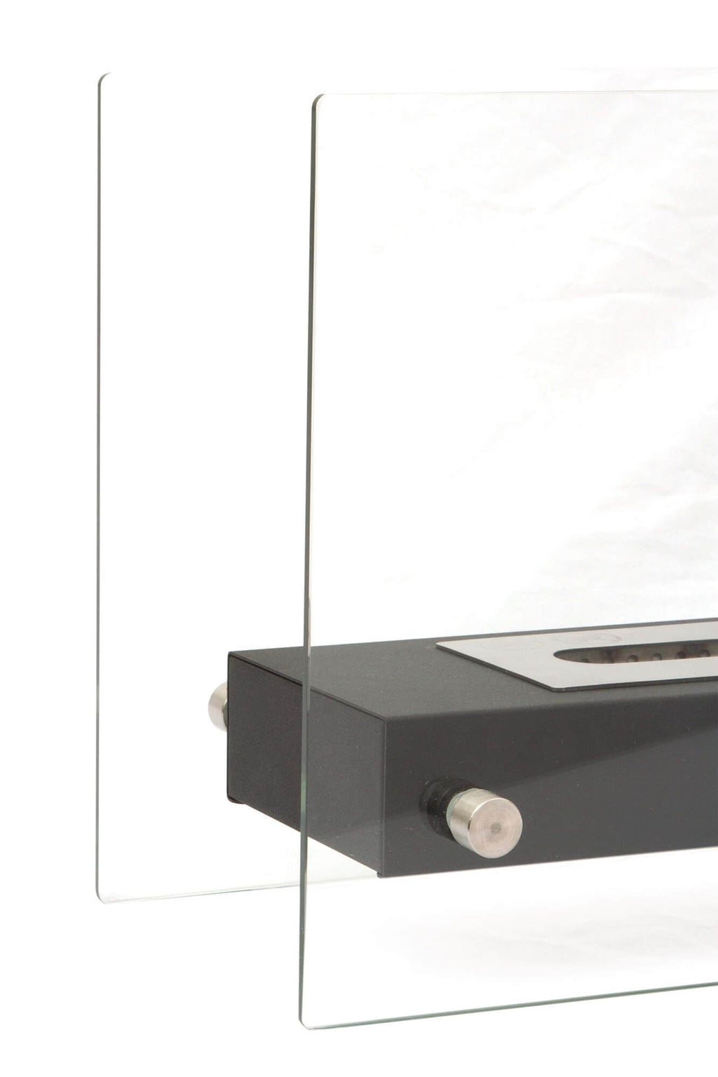 Besonderes Augenmerk wird auch auf die Benutzerfreundlichkeit gelegt. Die beiden Seiten bestehen nämlich aus gehärtetem Glas, was auch im Falle eines Bruchs mehr Sicherheit garantiert. Und die spezielle Form des Brenners hält das Bioethanol zurück und verhindert, dass es ausläuft, wenn der Kamin auf den Kopf gestellt wird.