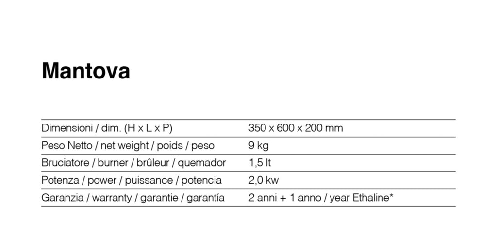 Camino a Bioetanolo da Tavolo 60x20x35 cm 2000W 1,5L Mantova Nero
