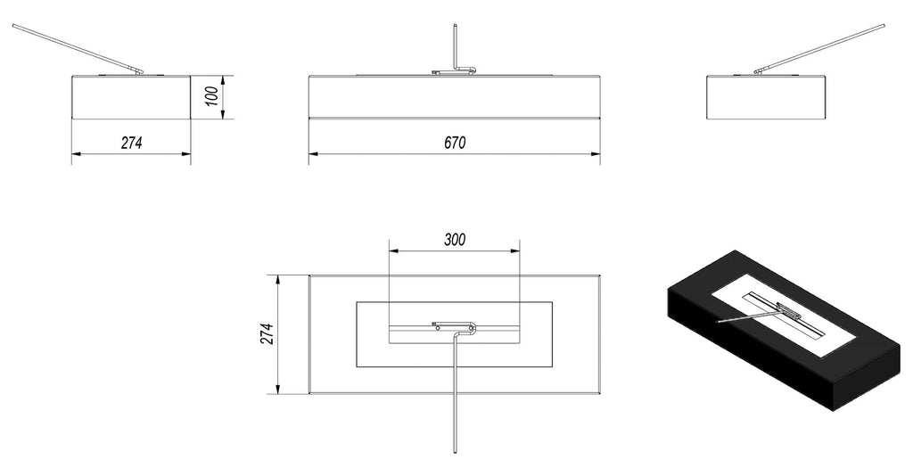 Technische Eigenschaften Bioethanol Tischkamin 67x10x27,4 cm Flig Rialto Max Weiß