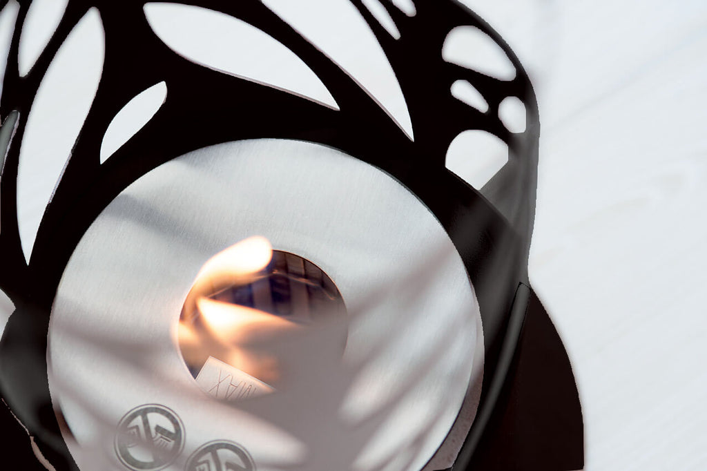 Bio-Kamin aus reinem Stahl, mit einem perfekten und minimalistischen Design.