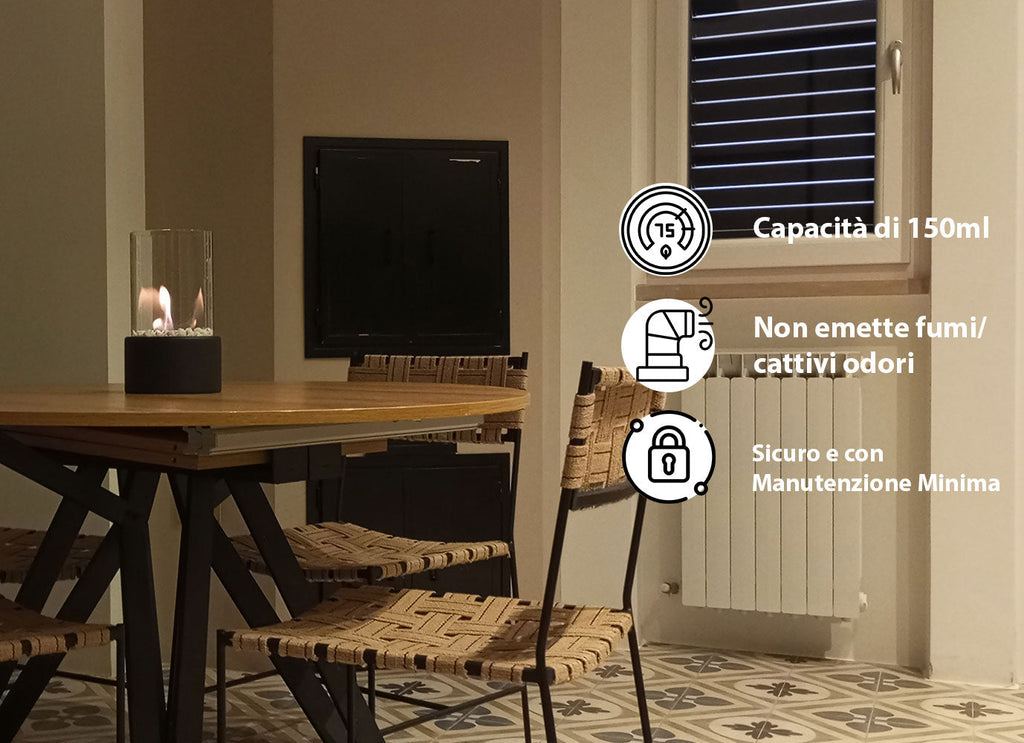 - ECO-FRIENDLY: Funziona con bioetanolo, un combustibile rinnovabile e non tossico che brucia senza emettere fumo, odori o ceneri, rispettando l’ambiente e senza inutili pulizie complesse.