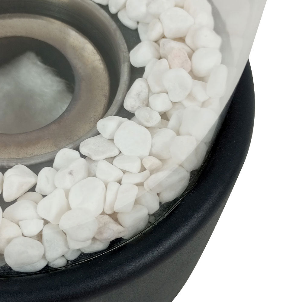 All’interno, ciottoli decorativi bianchi aggiungono un tocco di stile, rendendo il camino un elemento di arredo raffinato e versatile. Ideale sia per interni che per esterni, il camino da tavolo CALIDRIA è perfetto per creare un’atmosfera intima e calda durante una cena all’aperto, una serata in terrazza o un momento di relax in salotto. Funzionando a bioetanolo, una fonte di energia pulita e sostenibile, il camino non produce fumo, odori sgradevoli o residui di cenere, garantendo un’esperienza semplice ed immediata, senza alcuna manutenzione.