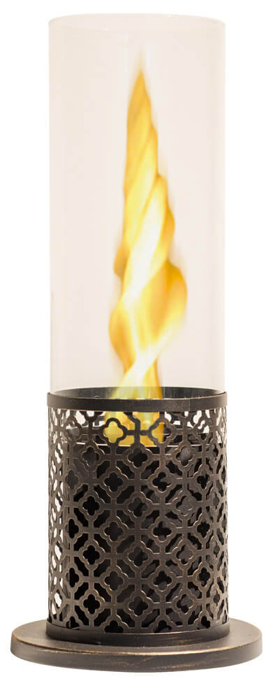 Bioethanol Tischkamin Ø20x49,5 cm aus Stahl und schwarzem Glas