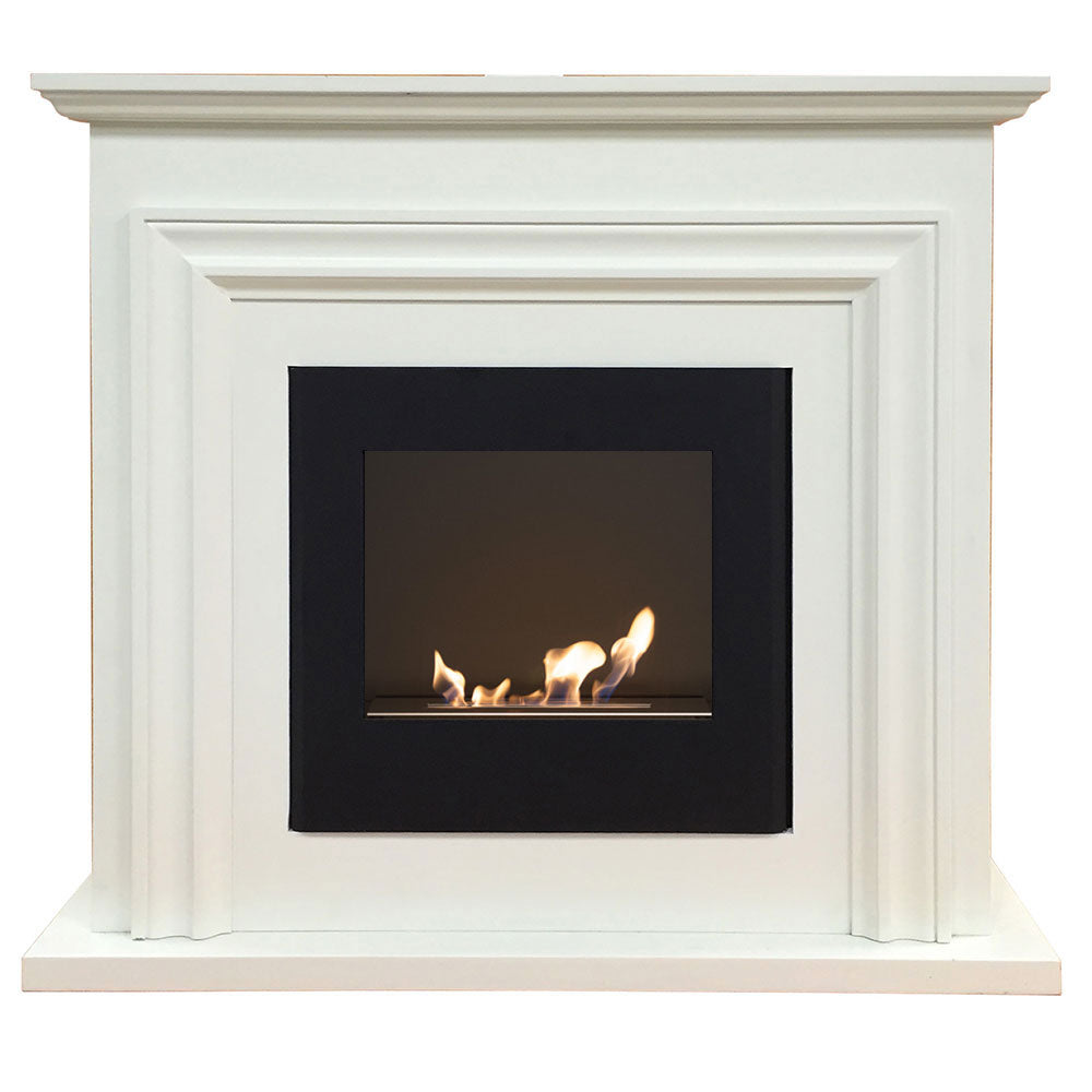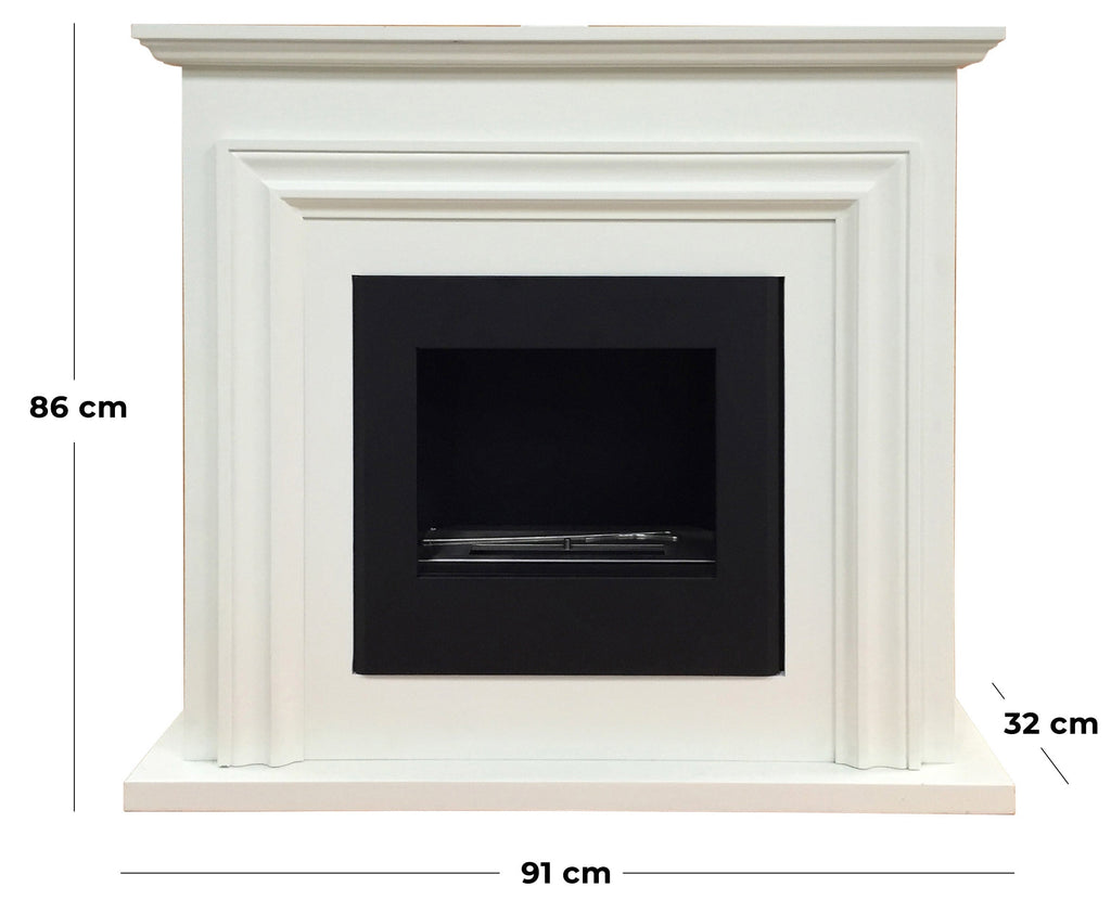 Bioethanol-Bodenkamin 91x32x86 cm Struktur aus weißem Holz
