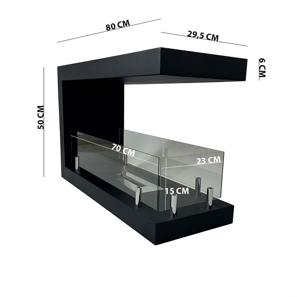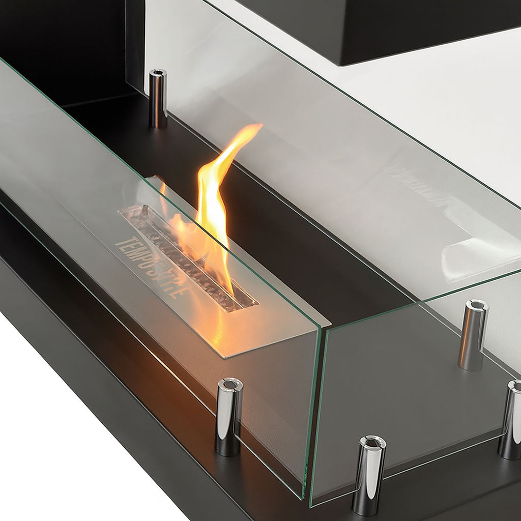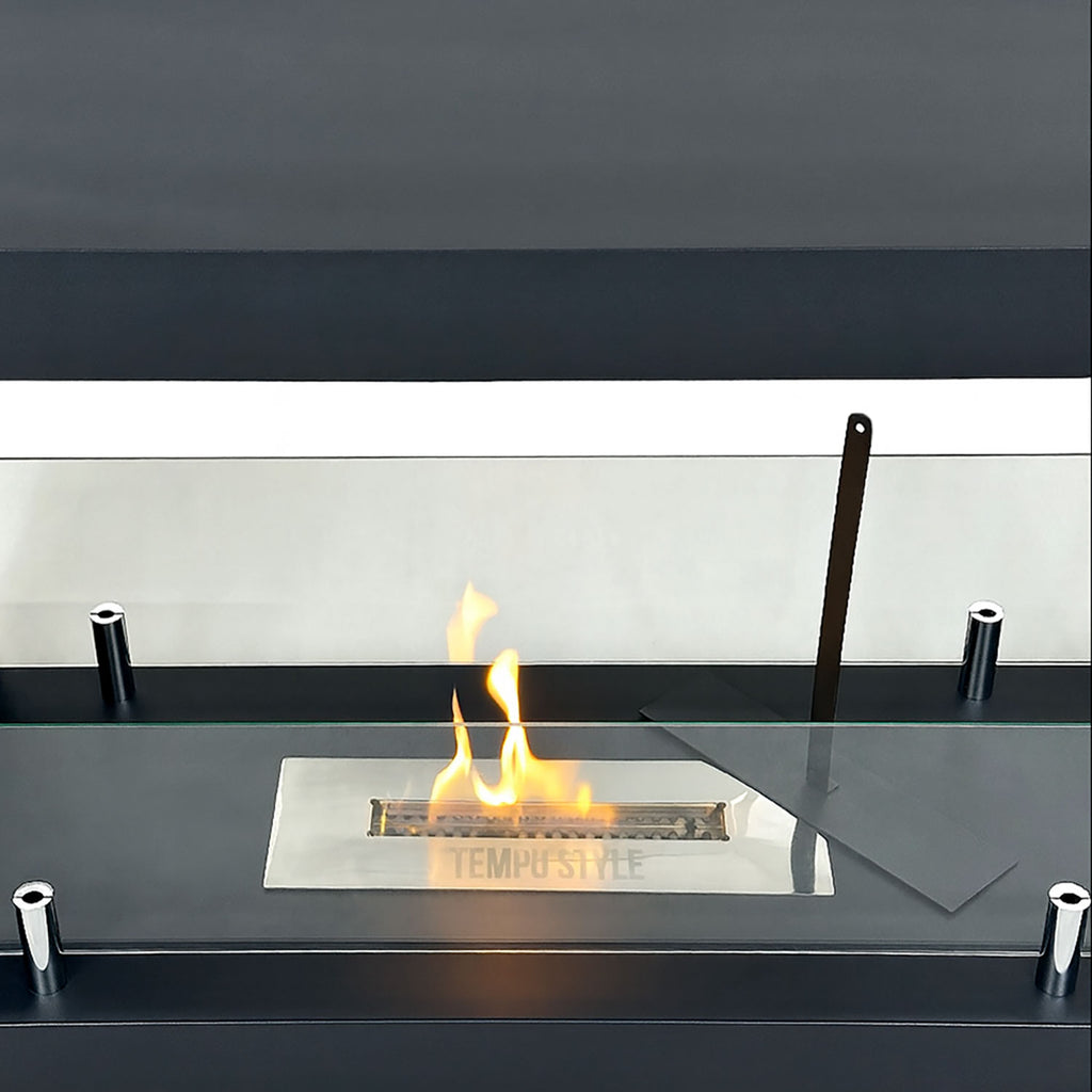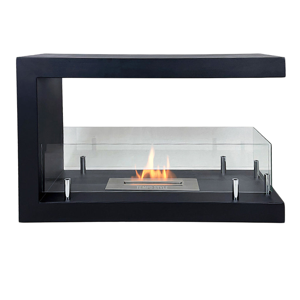 Camino a Bioetanolo da Terra Artico Design Aperto e Vetri Protettivi Serbatoio 850 ml in Acciaio Verniciato Nero