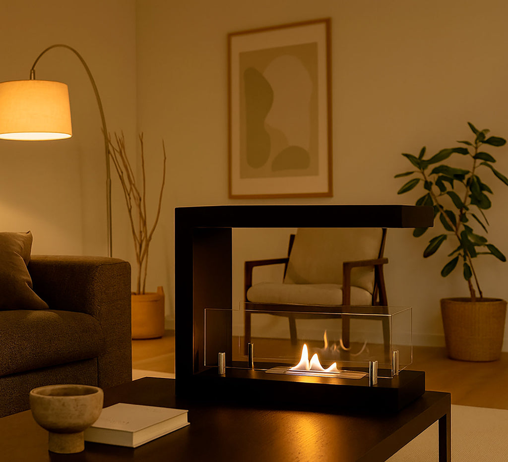Realizzato in acciaio verniciato a polvere e vetro borosilicato, resiste a calore, urti termici e usura nel tempo. Ideale per living moderni, open-space, loft e spazi contract che vogliono godere del calore di una fiamma vera, senza fumi, odori e manutenzioni costose.